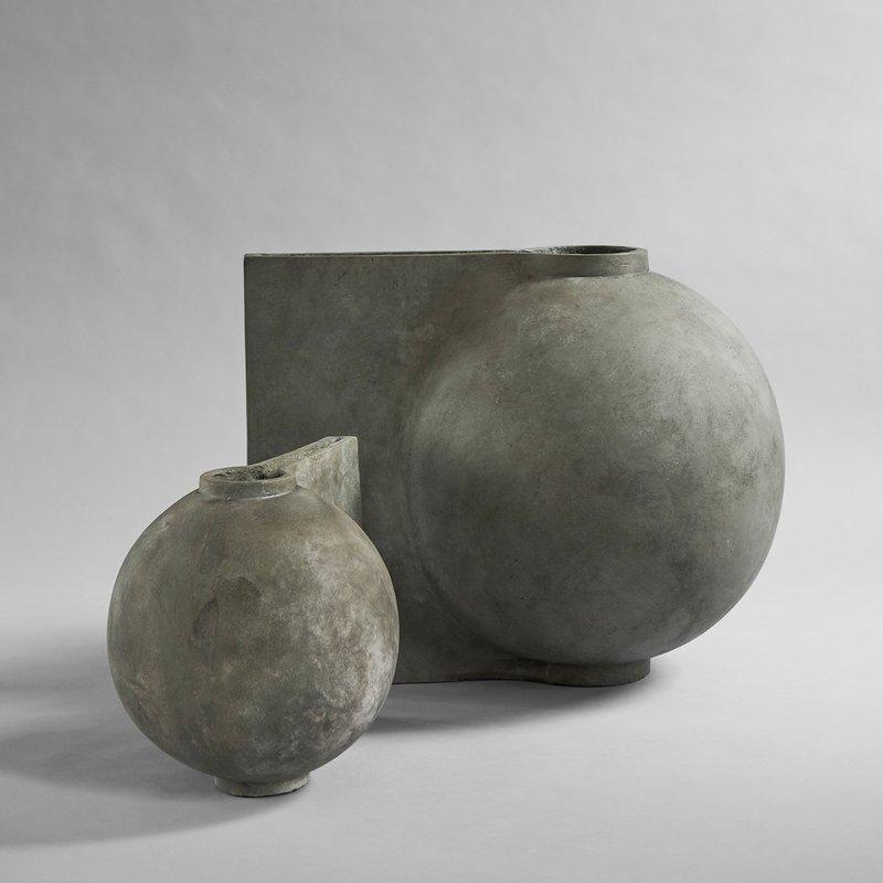 Offset is designed as a distortion of a classic vase shape. The vase drastically changes appearance, when viewed from specific angles. From one side it imitates the picture of a traditional vase, and from the other it becomes a sculptural object. Offset is made from fiber concrete and comes in two sizes.