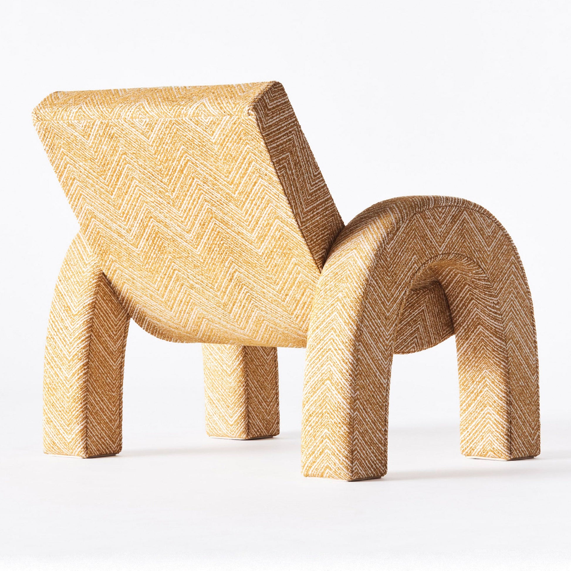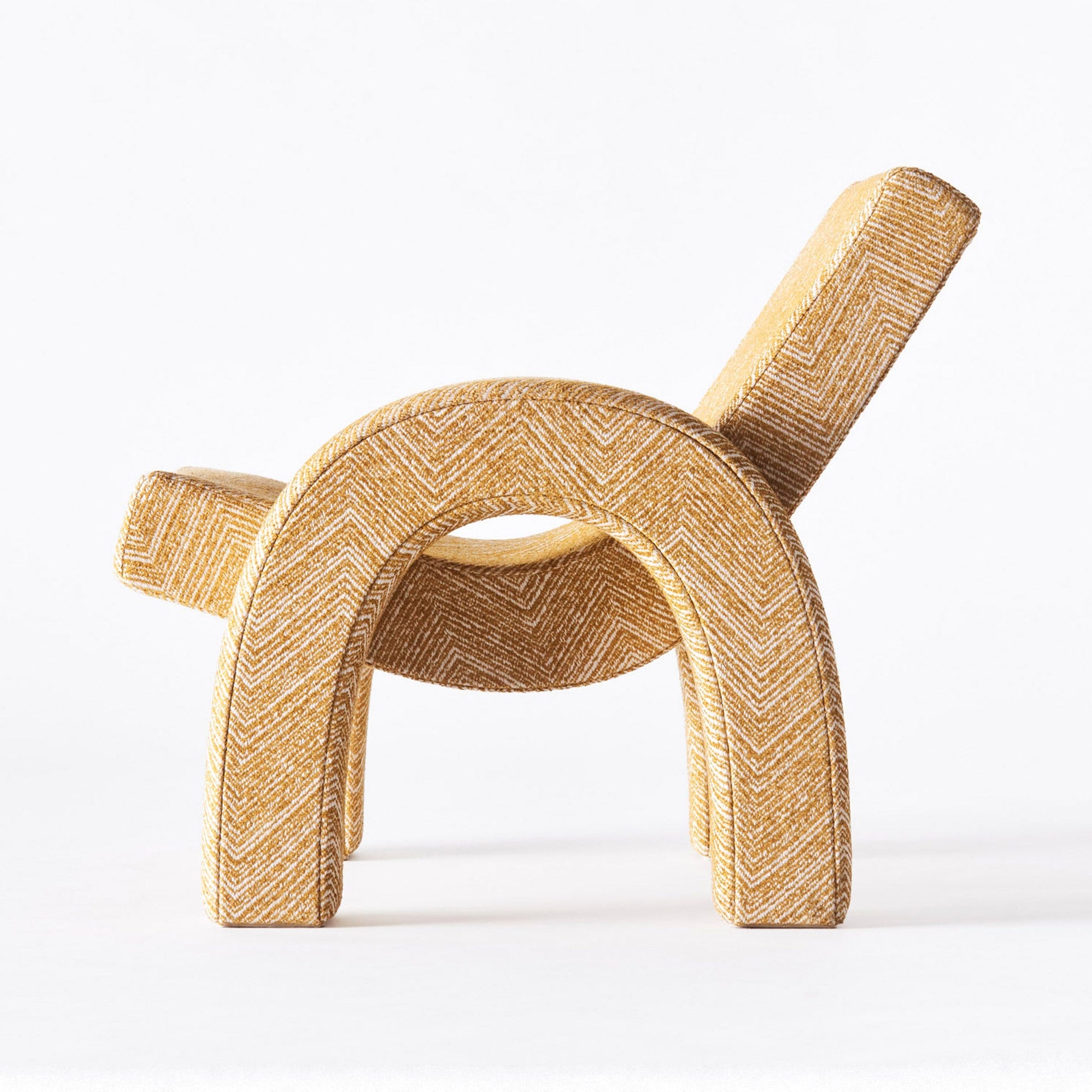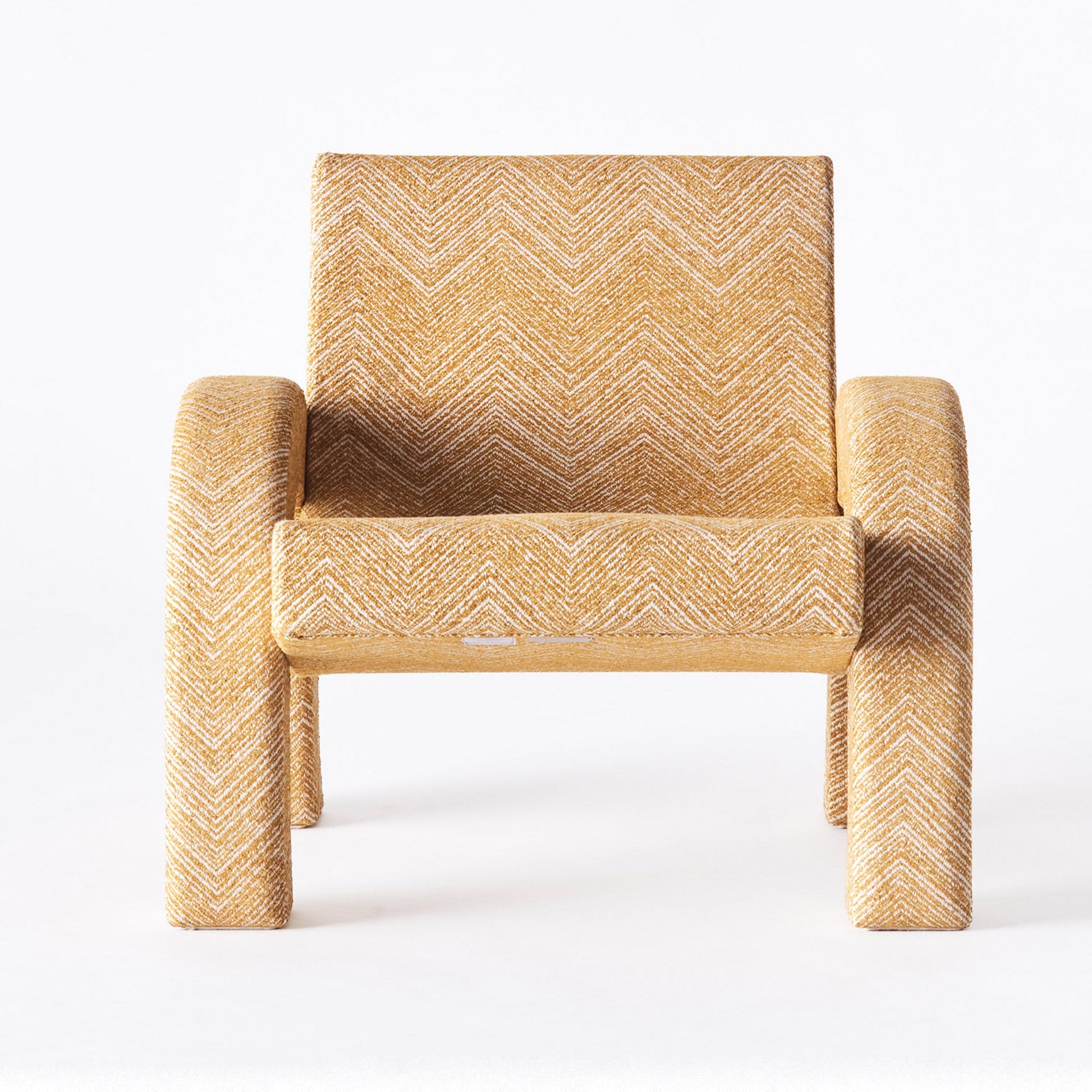 With inspiration from famous architecture such as the Arc de Triomphe in Paris and Arco De Triunfo in Barcelona, the Arco Lounge Chair was born. This version has been upholstered in a Teide Ochre fabric with a zig-zag pattern. The frame is made of beech and plywood, while the seat is made of nozag springs.
