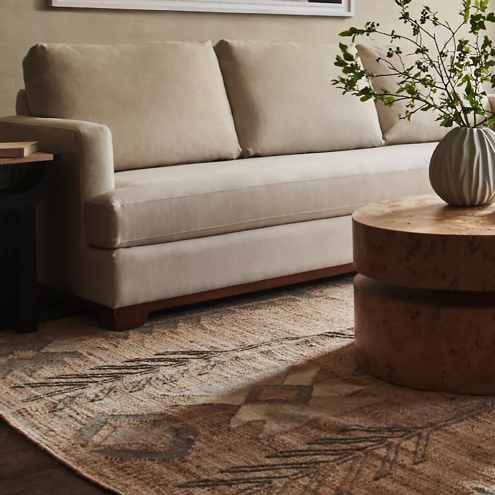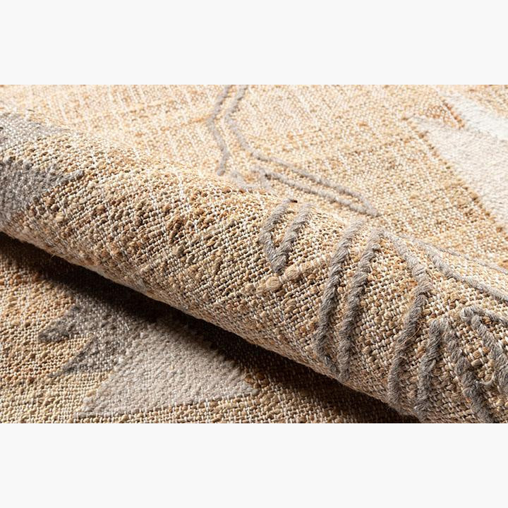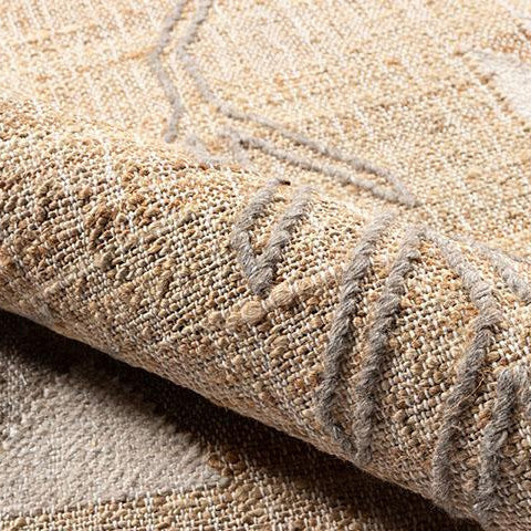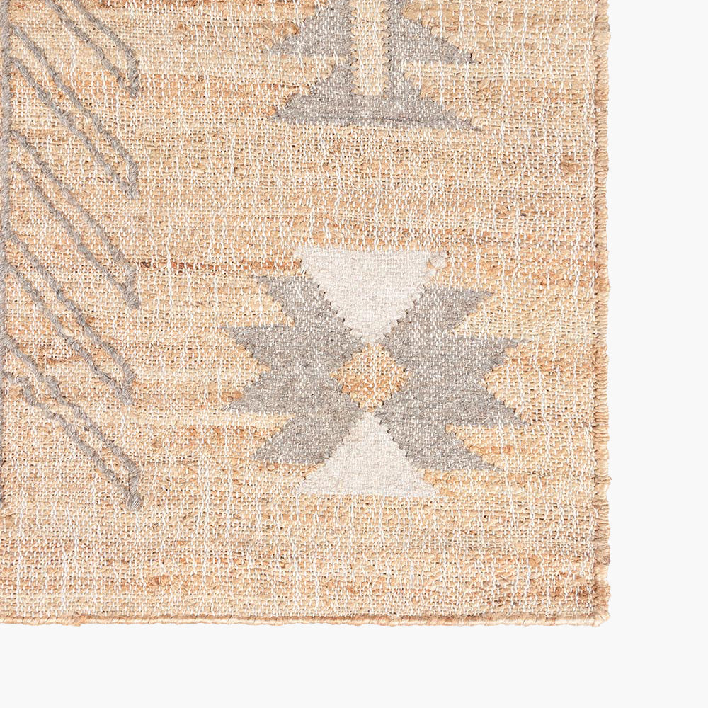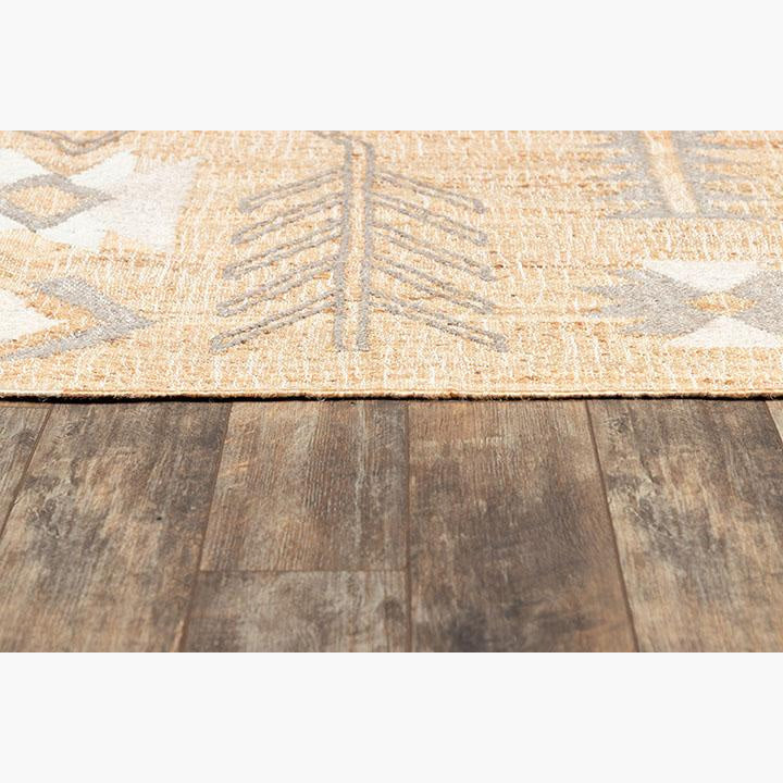 Hand Woven of 100% Jute. With a reverence for symmetry and simple geometric shapes, the Argan collection was inspired by traditional African mud cloth patterns. Made from a handwoven combination of jute and wool, each rug possesses a perfectly imperfect look.