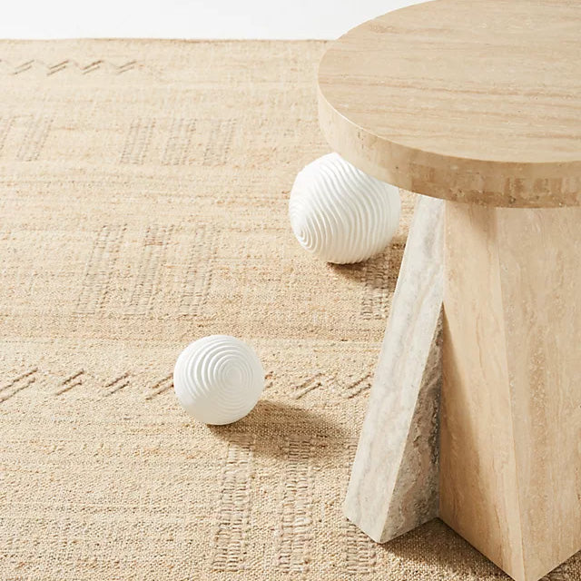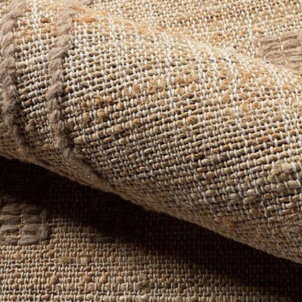 Hand Woven of 100% Jute. With a reverence for symmetry and simple geometric shapes, the Argan collection was inspired by traditional African mud cloth patterns. Made from a handwoven combination of jute and wool, each rug possesses a perfectly imperfect look.