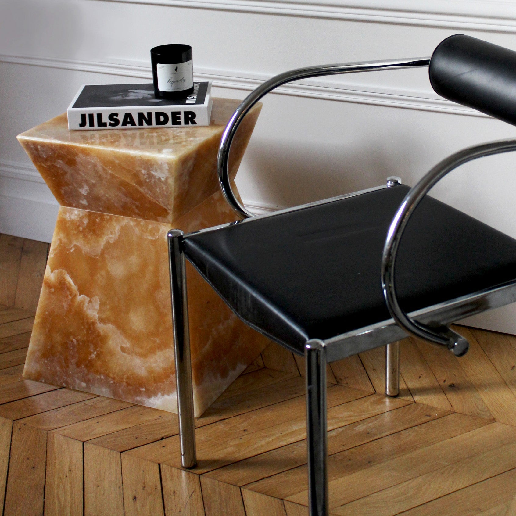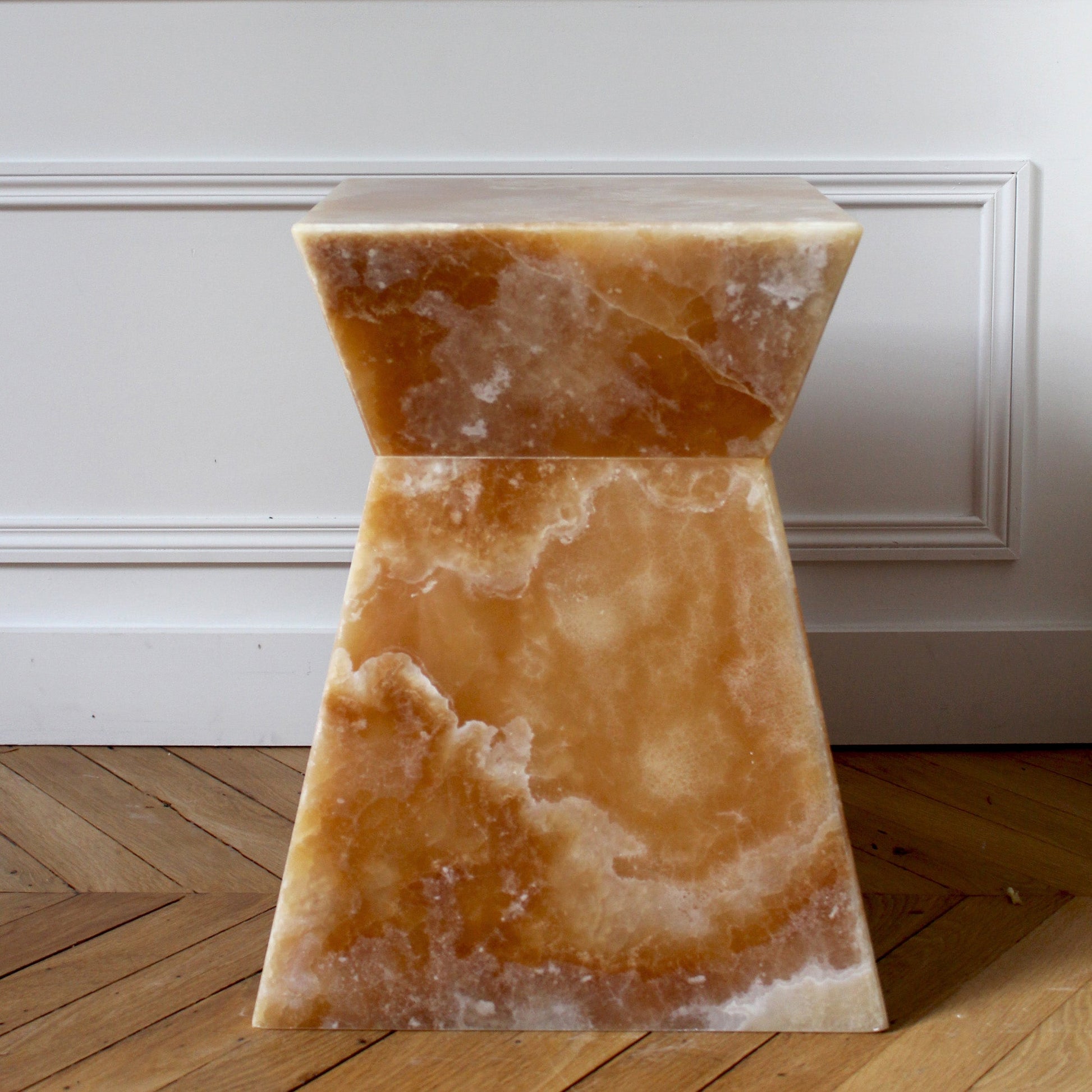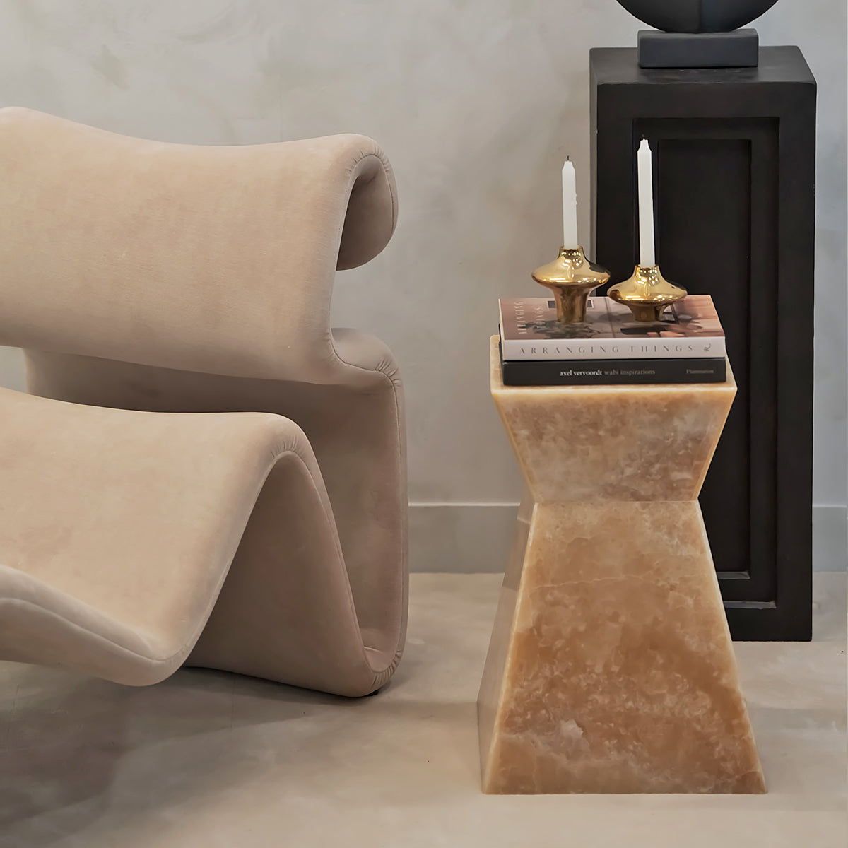 The ARIA table/stool is defined by its classic chic pyramid design. Its symmetry fits into any interior, classic or contemporary. This product is solid, and has an elegant silhouette. The ARIA piece can be used as a side table, bedside table, or stool.