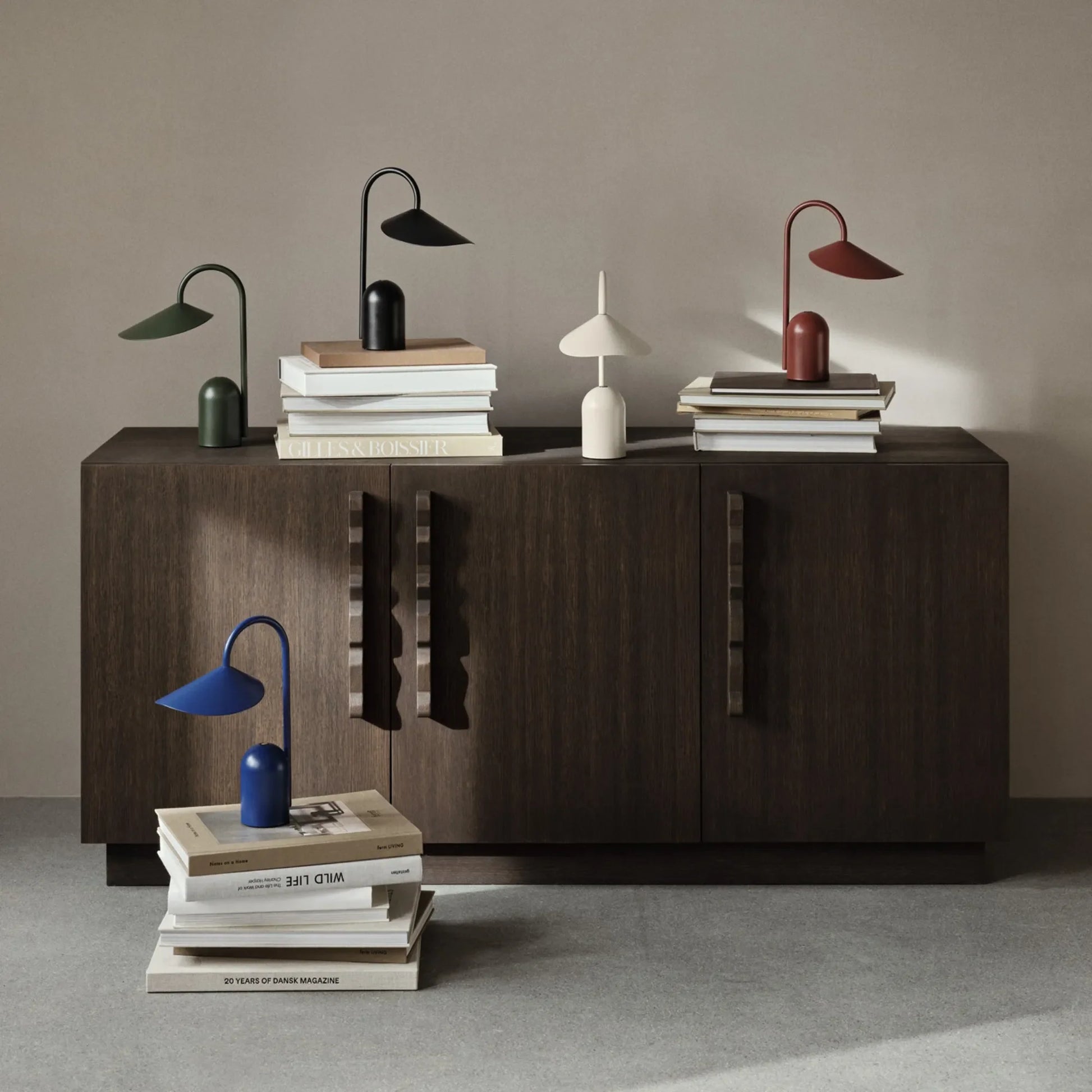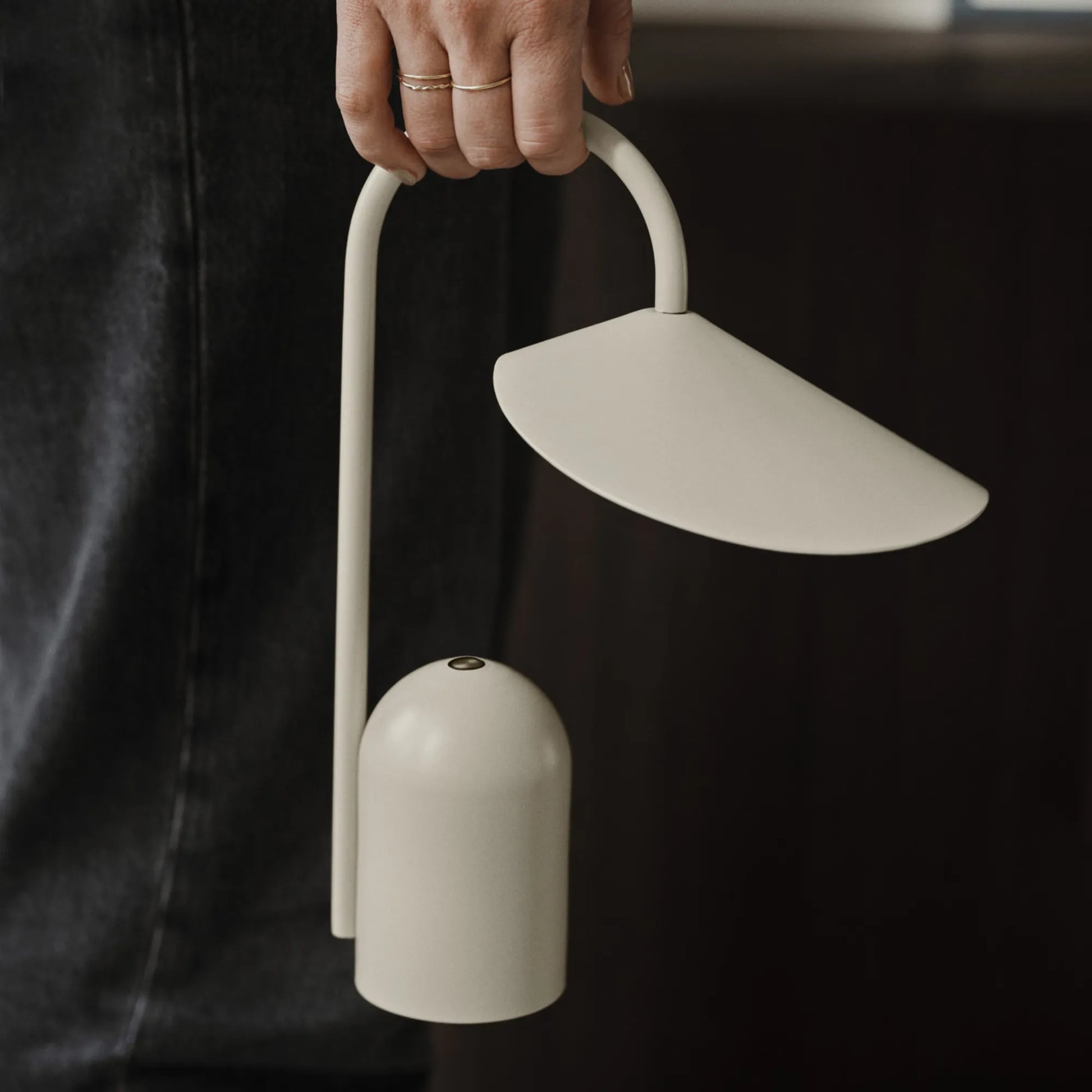 The Arum Portable Lamp is a versatile and mobile lighting solution. This petite, portable LED lamp is rechargeable via USB-C, allowing you to create a cozy setting anywhere you go. While it echoes the shape of the Arum Table Lamp, this portable version is crafted entirely from powder-coated iron and aluminium, offering durability and a sleek finish. Its design maintains the collection's signature elegance and balance, with its petal-shaped shade appearing to float from the stem-like rod. The lamp features a three-step touch dimmer, providing adjustable ambient lighting to suit your needs.