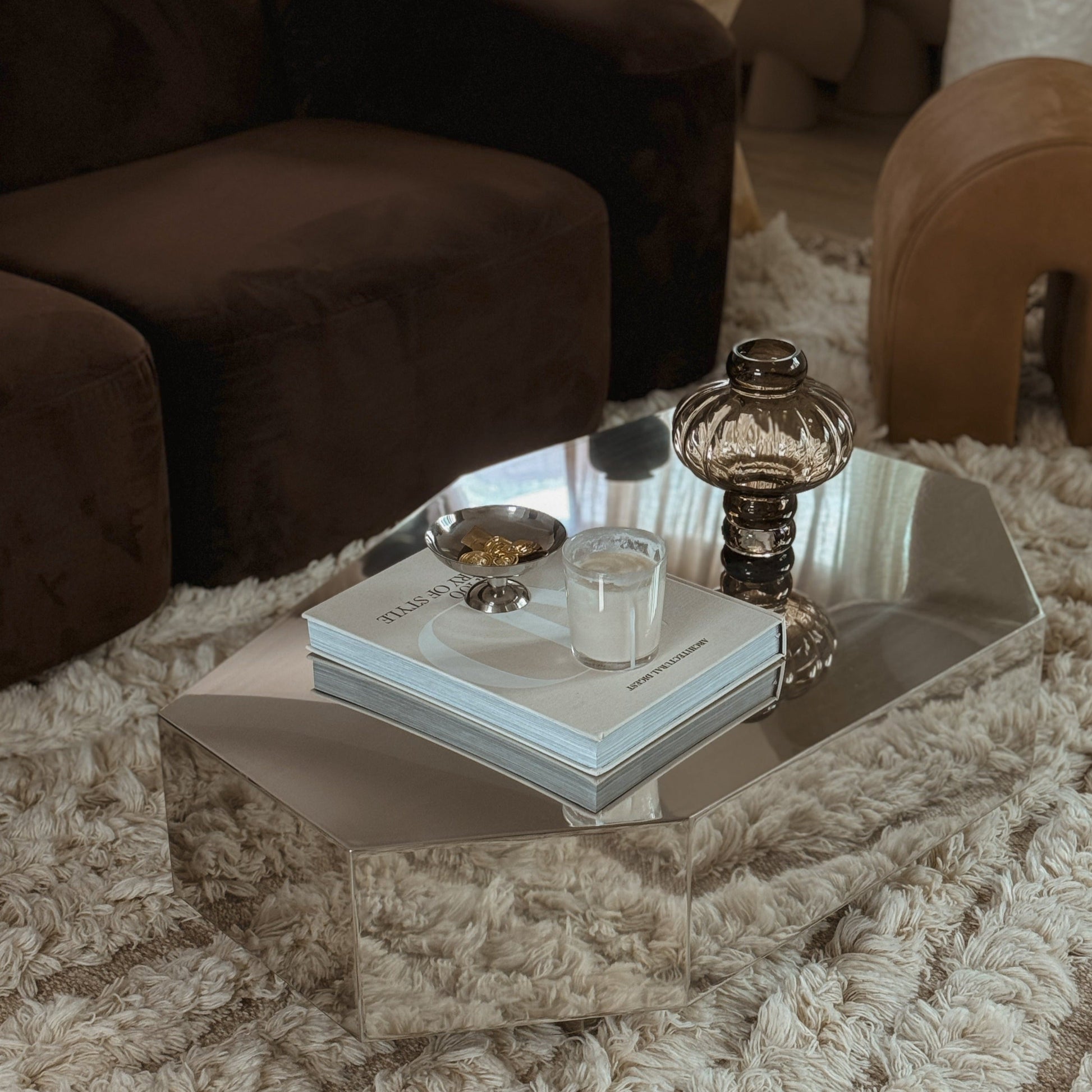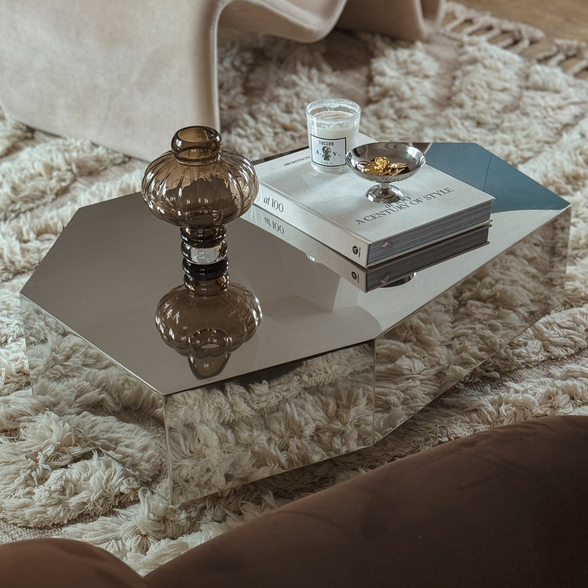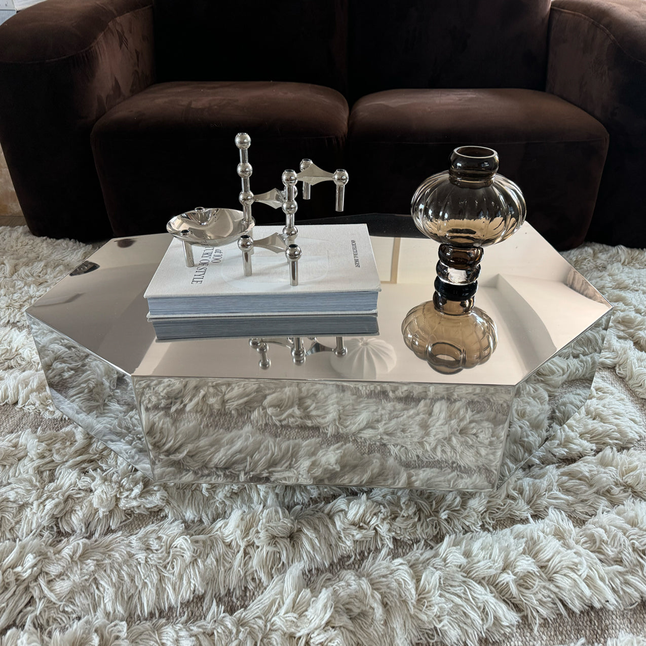 It is made with 304 stainless steel and is hand polished. It is rust-proof in any normal atmospheric conditions, and can be used for outdoor spaces.