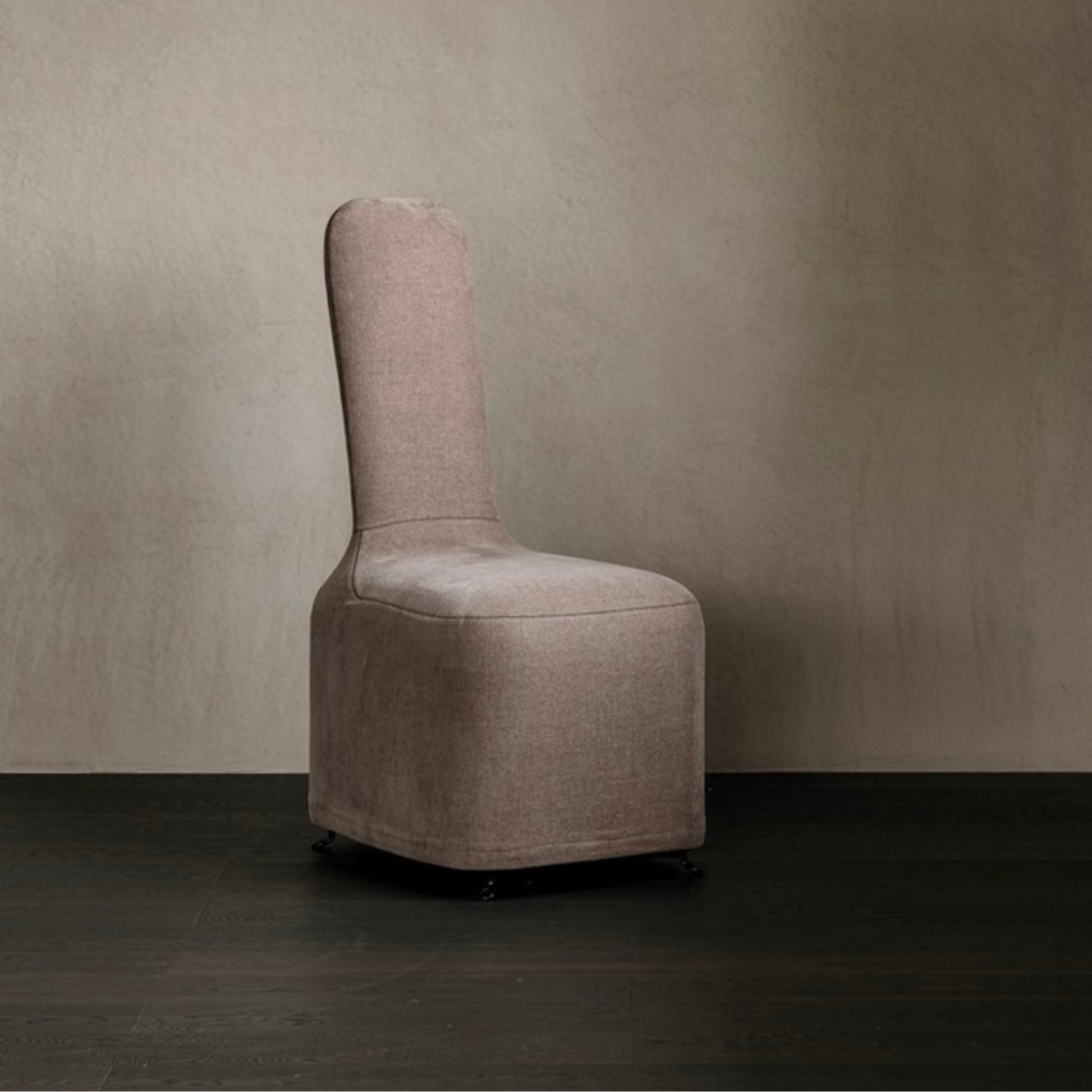 This Bella Upholstered Dining Chair is crafted with solid wood and a soft, comfortable fabric. The high-quality material ensures durability and the upholstered design provides a cozy seating experience. Enhance your dining space with this elegant and sturdy chair that will elevate your interiors.