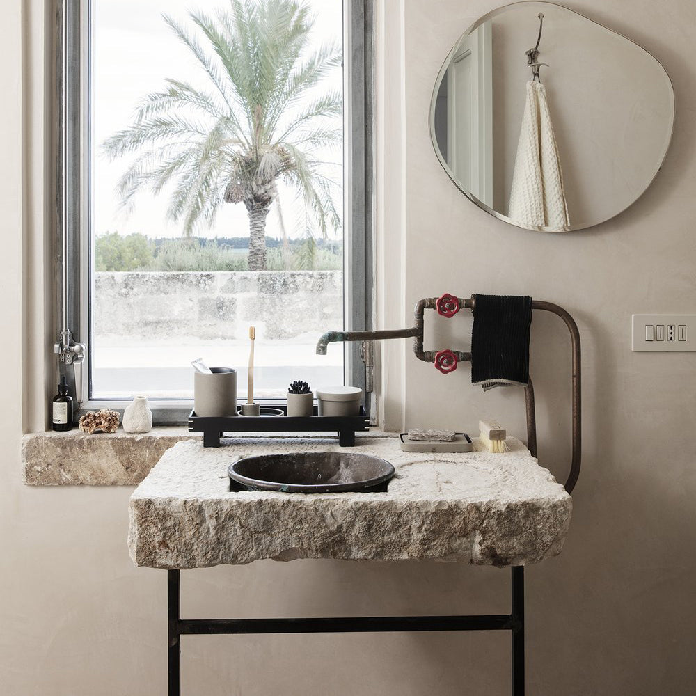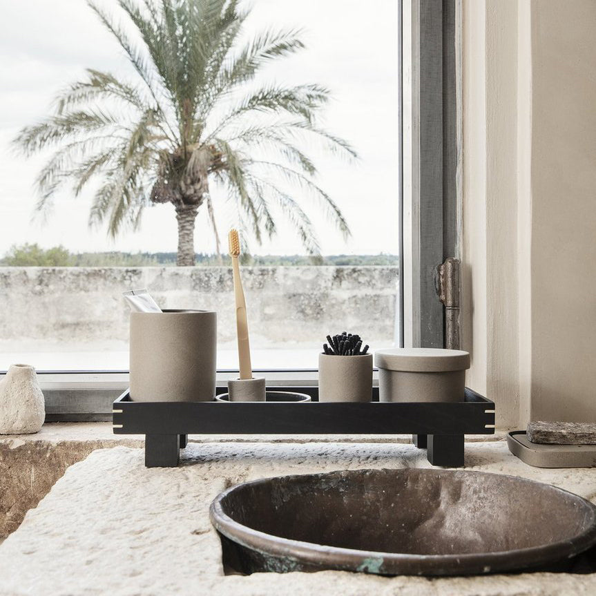 Ferm Living's Bon Accessories petite tray is part of the Bon collection, drawing inspiration from traditional, minimalist Japanese aesthetics. Crafted out of rough, sand-colored porcelain and glazed on the inside the petite tray is perfect for organizing everything from holding a bar of soap to arranging precious knick-knacks. Ferm Living’s Bon collection is a series of clever, bare designs that emit a considered, organic feel. Group pieces of the Bon collection together for a more harmonious way of storing.