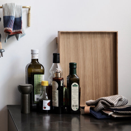 Drawing a clear line to Japanese aesthetic, the Bon series of wooden trays has a simple expression with a lightness from the four feet, lifting up the tray. With visible joints on the corners of the tray, it's made with love of classic craftsmanship, and the solid oak gives you a durable and classic tray for your morning coffees or afternoon drinks.