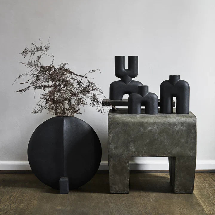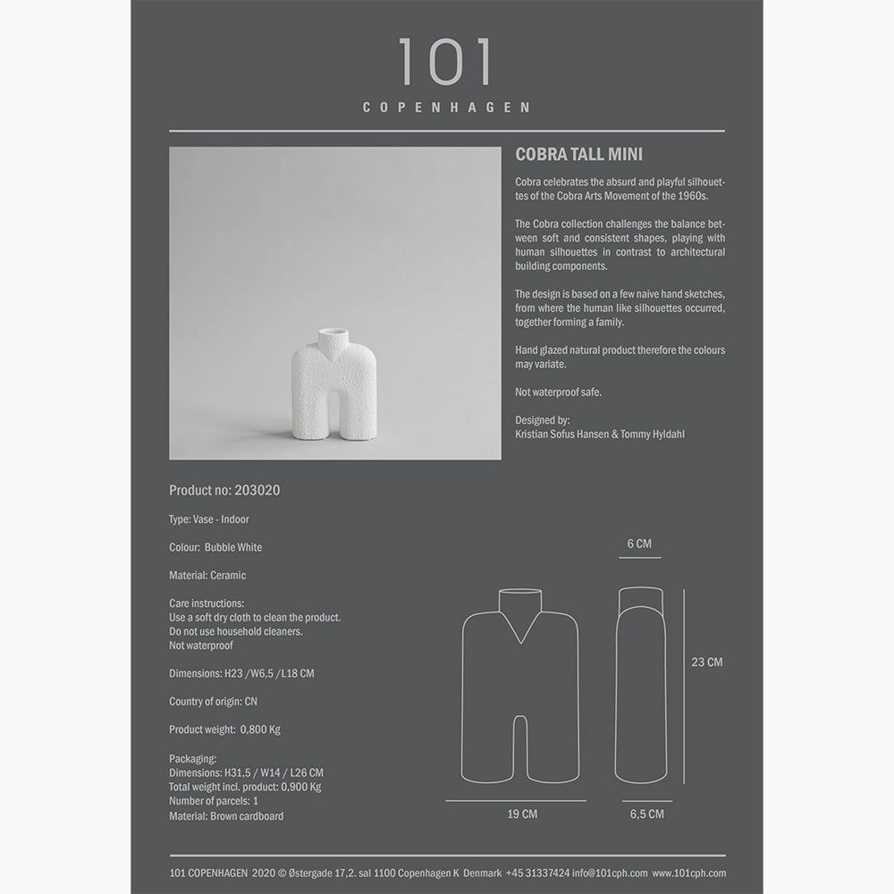 Cobra celebrates the absurd and playful silhouettes of the Cobra Arts Movement of the 1960s. The Cobra collection challenges the balance between soft and consistent shapes, playing with human silhouettes in contrast to architectural building components. Hand-glazed natural product therefore the colors may vary. Not waterproof safe.