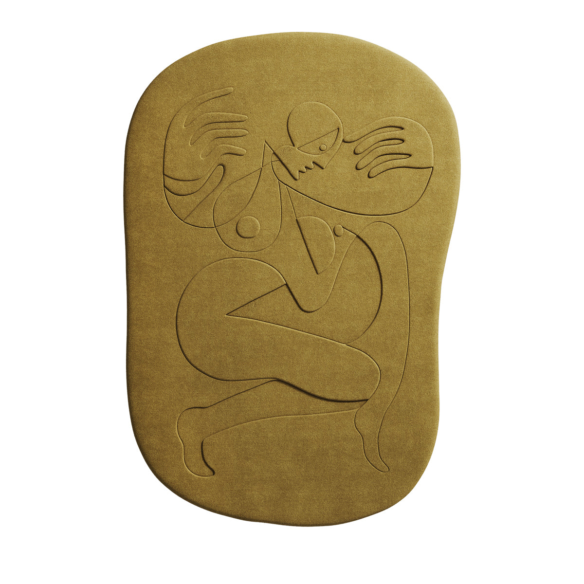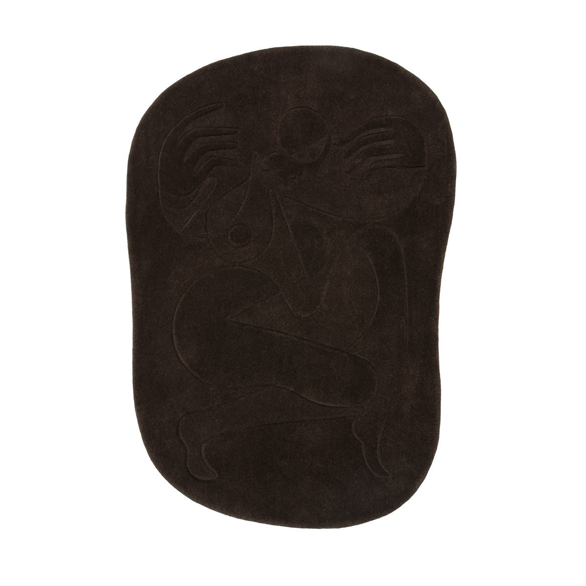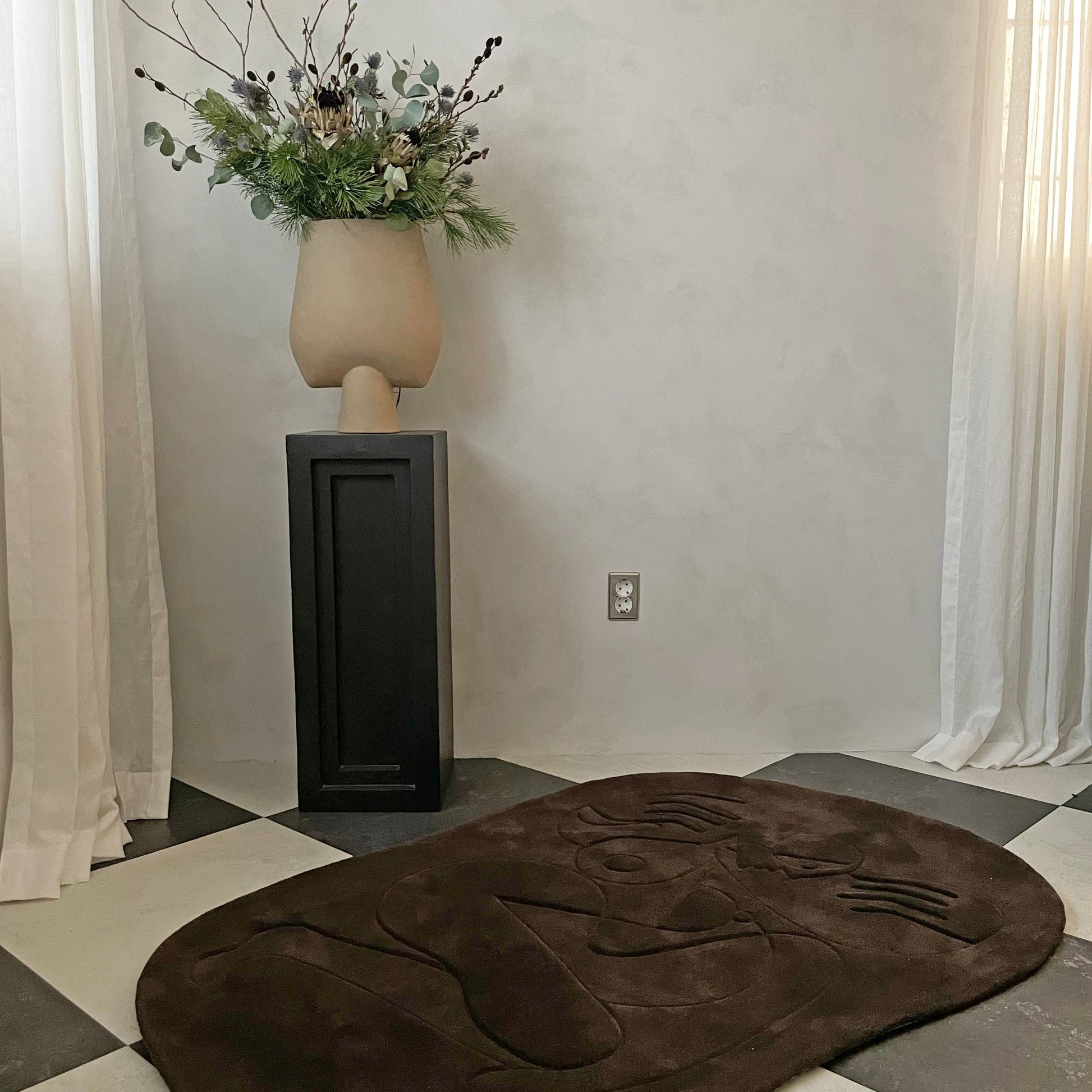 A statement rug anchors the room and sets the tone. Luxurious and deeply feminine, this hand-tufted rug tells a story of who you are and piques your curiosity about whom you want to be. A striking female form is subdued by the deep, rich color of the New Zealand wool. Arresting to look at and luxurious to feel, this piece adds drama to any room.