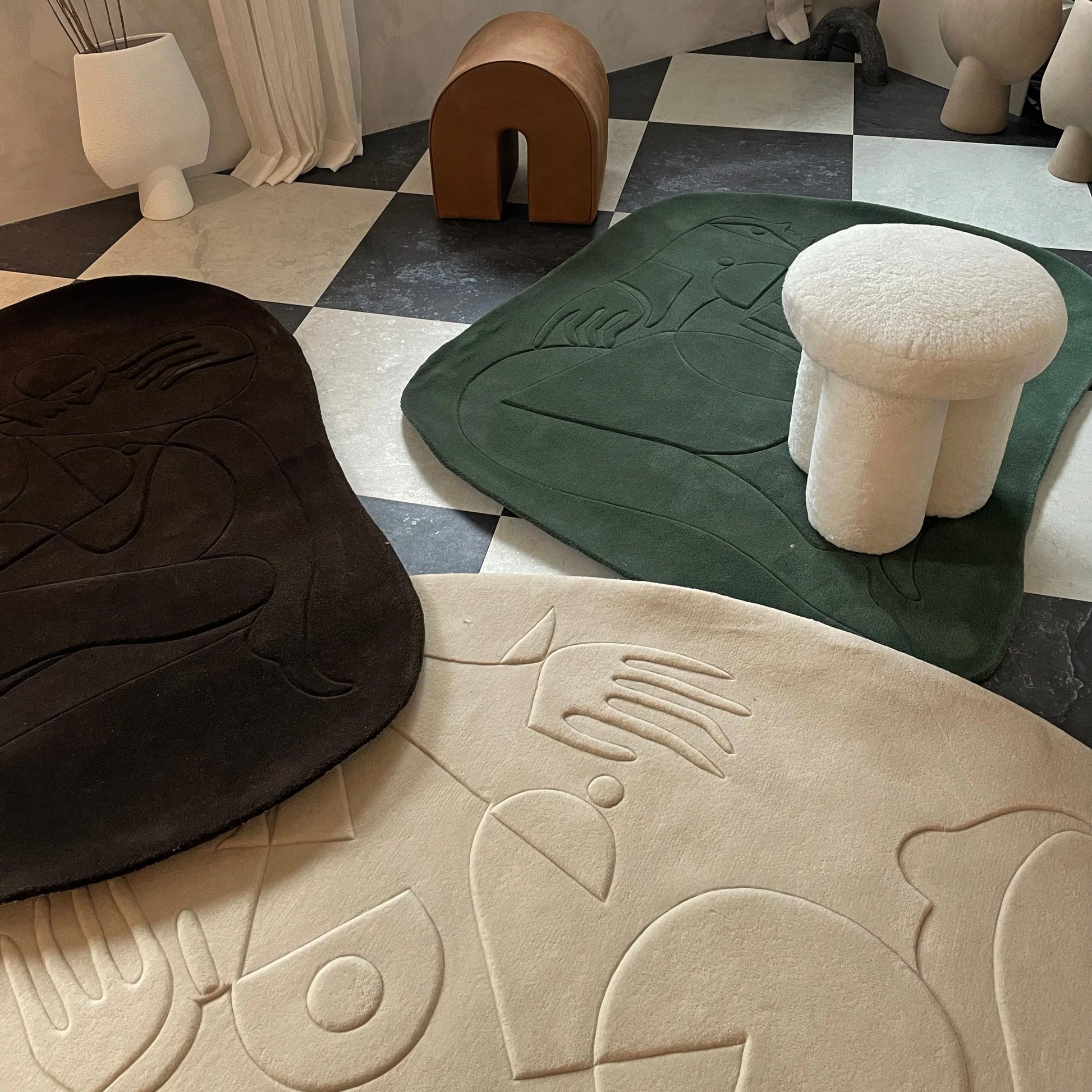We reinterpreted her drawings and created high quality art rugs. Now you can incorporate her art in different scales and shapes in every space.