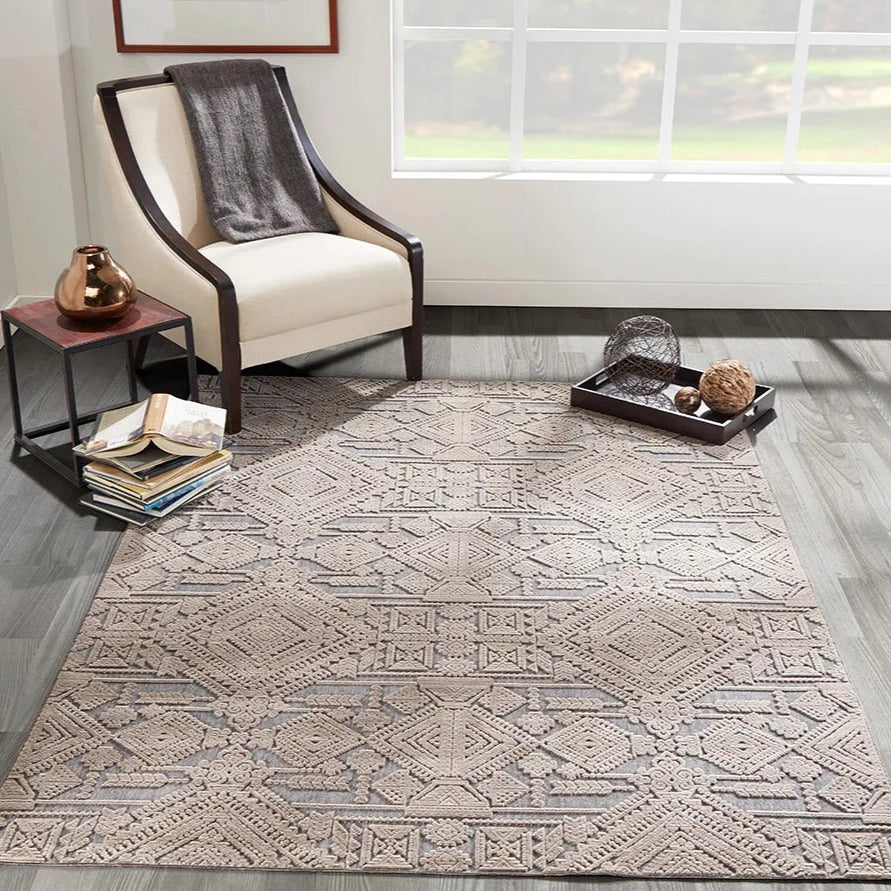 A blend of synthetic and soft chenille fibers lends a sculptural quality to each decorative floorcovering, using depth and dimension to define the edges of every intricate pattern. Strong power looming techniques will keep this rug looking great in your home for years to come.