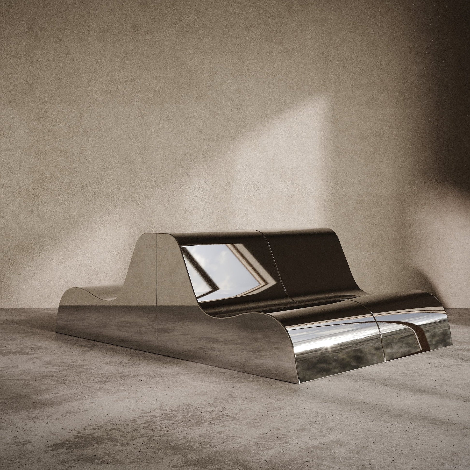 This lounge chair is a sleek and sculptural masterpiece, crafted from high-quality stainless steel with a mirror-polished finish. The polished steel not only gleams with a dramatic shine but also mirrors its surroundings, creating mesmerizing illusions that enhance any space it's placed in. Its seamless, curvaceous form flows effortlessly from the rounded base to the top of the backrest, giving it a fluid and modern aesthetic.