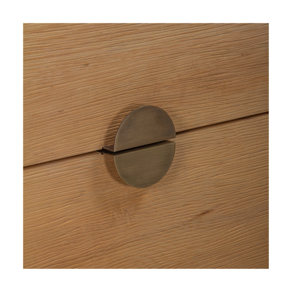 An elevated storage solution, the Podium collection features textural, hand carved drawer fronts, framed by solid, FSC certified Oak cases. Custom brass drawer pull hardware and rounded brass plinth bases complete these one of a kind designs.