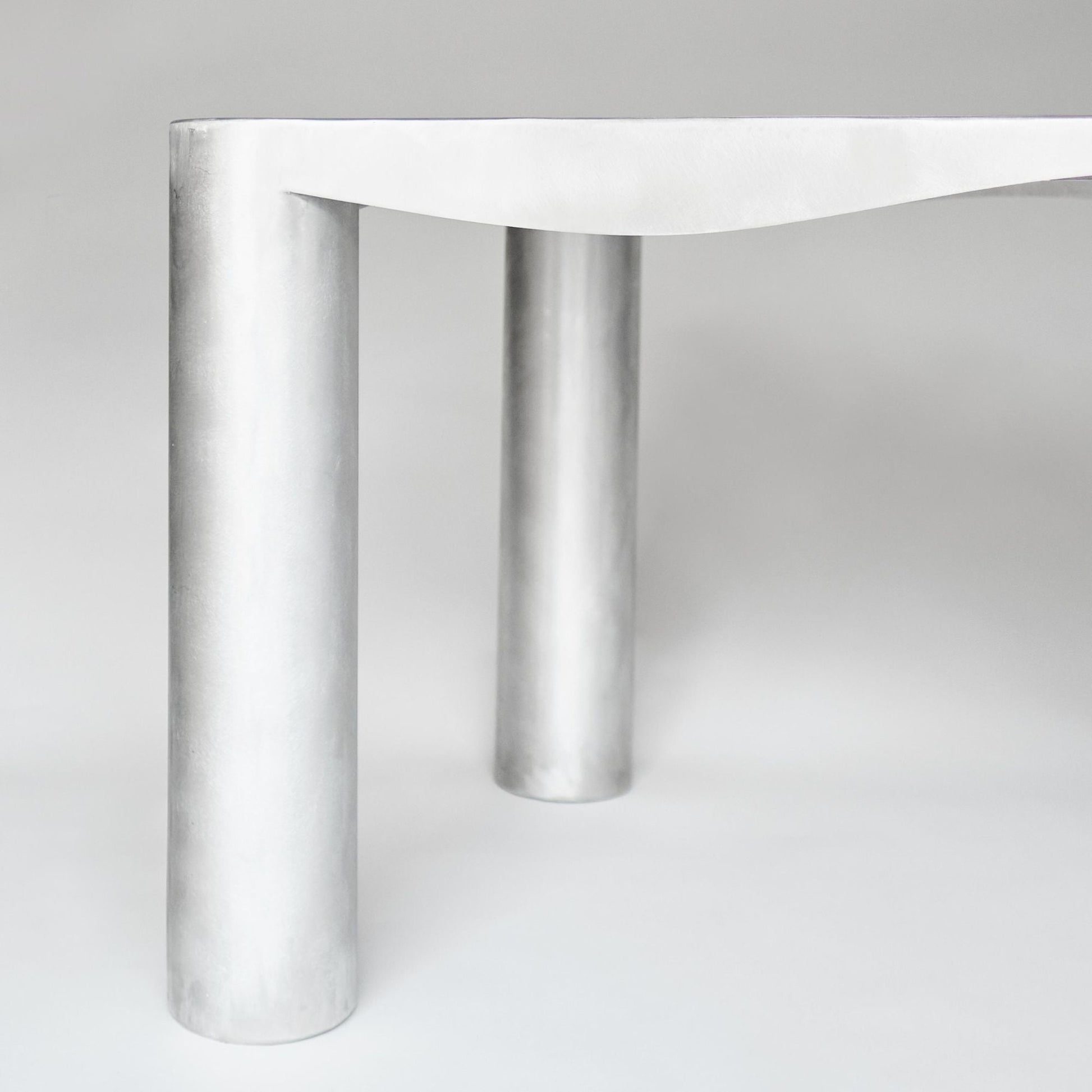 Our aluminum dining table can be made to your specification, it’s perfect for both indoor and outdoor use and can elevate any space. We love the way the legs blend into the top of the table, creating a seamless and elegant surface. We make these by hand to order in our North London Workshop.