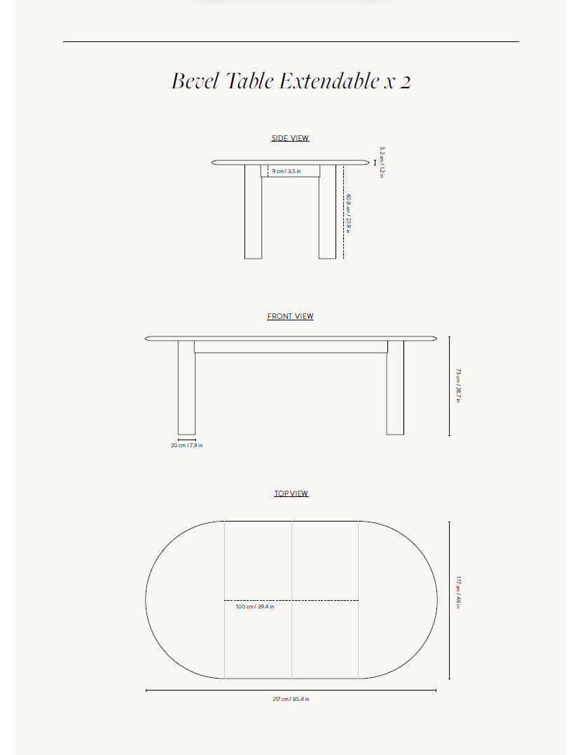 The solid wood table has a soft look but is strong and durable. You can choose between two shades - white oil or black finish. The Bevel series also includes a smaller table, which can be extended up to 167 cm, and a round table without an extendable function. In addition, an elongated Bevel bench, which is ideal for combination with a table.