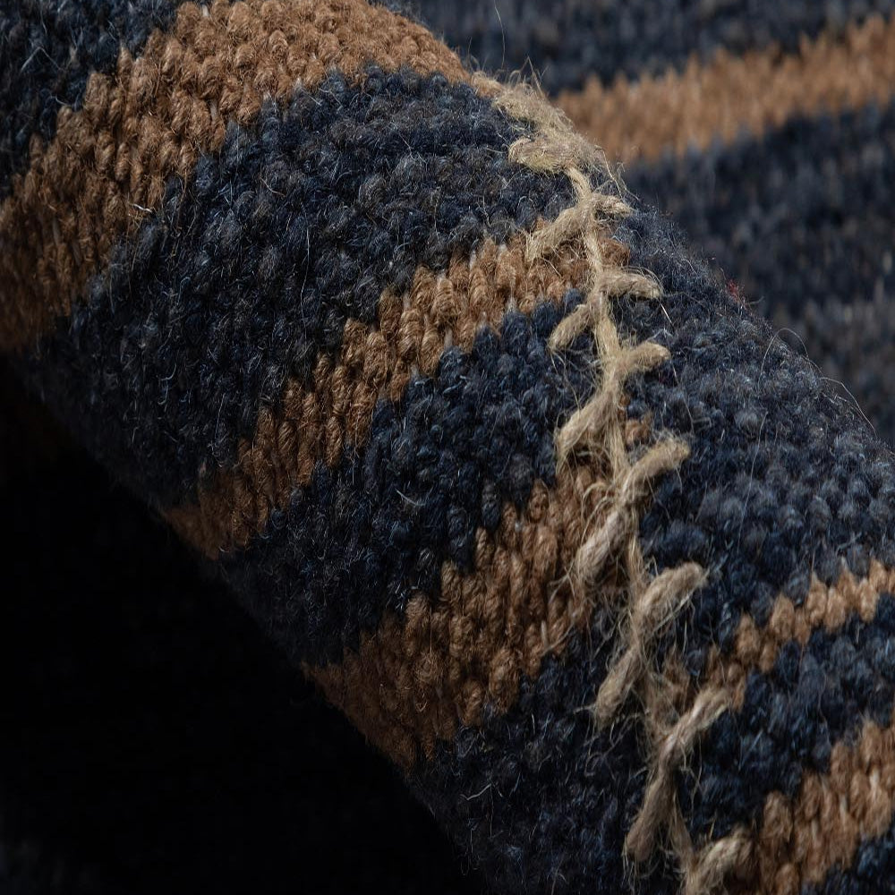 Hand Woven of 100% Wool. Inspired by everything from Shibori, Scandinavian flatweaves, and a myriad of other hand-dyed textiles, the Duar collection has a rich sense of history in its patterns. Space dyed, you’ll see color undulation in each style, ranging from deep indigo to almost black.