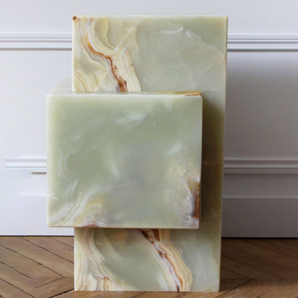 The Ella table is characterized by its minimalist, timeless design. The nesting of a cube in a rectangle makes this piece unique. Ideal as a side table or bedside table, in addition to being a piece of art, the Ella table is functional and adapts to any type of interior, side table, or decorative object.