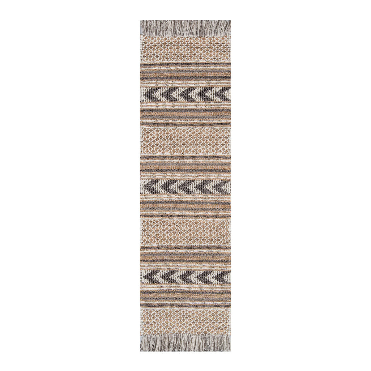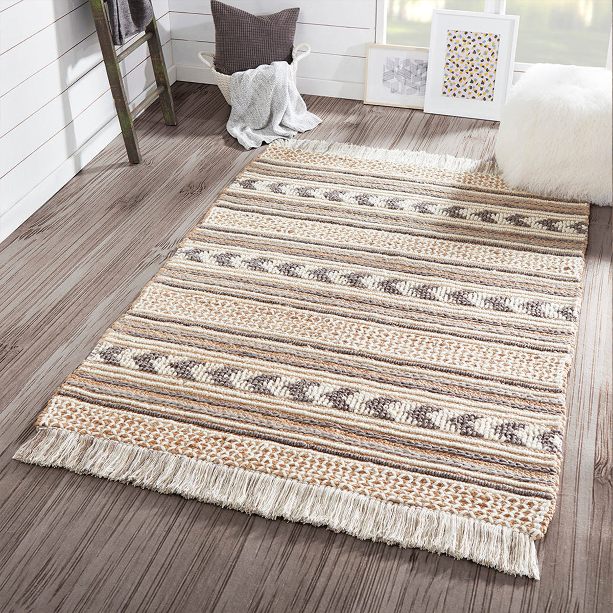Hand-woven using a variety of braided, loop and threaded techniques, Each finely crafted floor covering features fringed embellishment that enhances its relaxed sensibility with down-to-earth flourish.