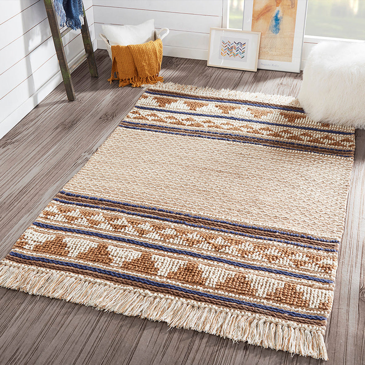 Hand-woven using a variety of braided, loop and threaded techniques, Each finely crafted floor covering features fringed embellishment that enhances its relaxed sensibility with down-to-earth flourish.