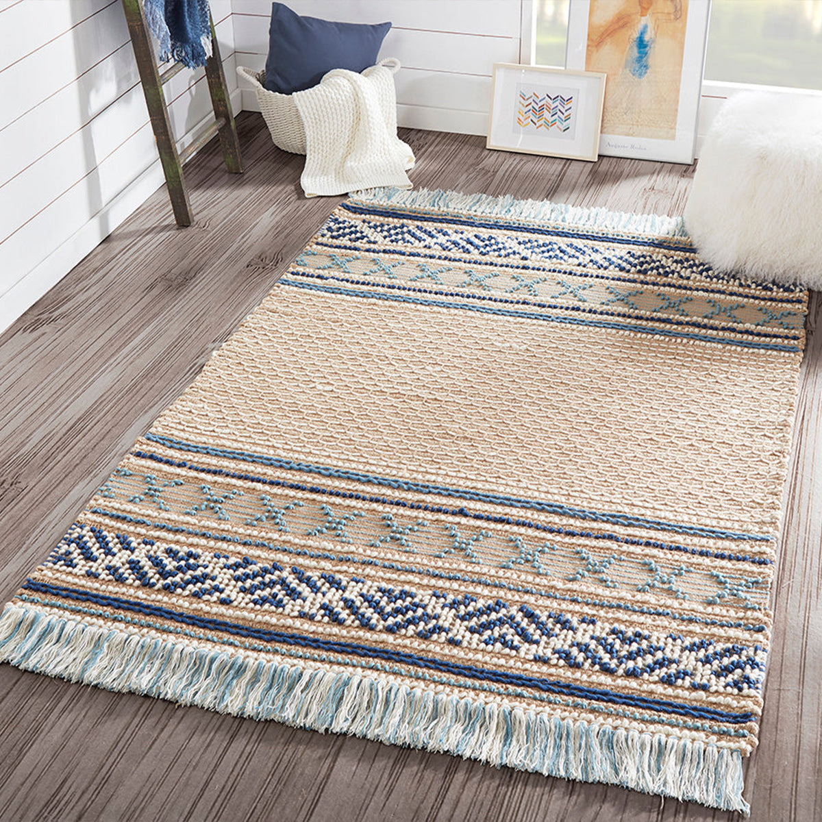 Hand-woven using a variety of braided, loop and threaded techniques, Each finely crafted floor covering features fringed embellishment that enhances its relaxed sensibility with down-to-earth flourish.