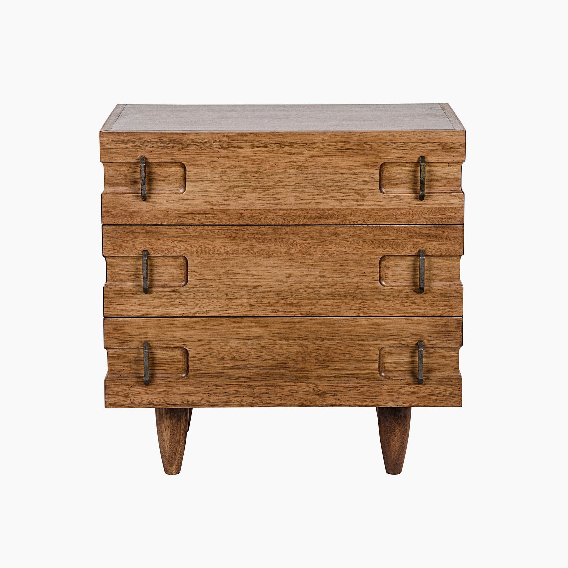 Deceptively rustic and rough-hewn, this primitive side table's sophisticated side is subtler. But look a bit closer and you can't miss simple beauty in its construction, the elegance in its tapered legs, and the refinement in its design details.