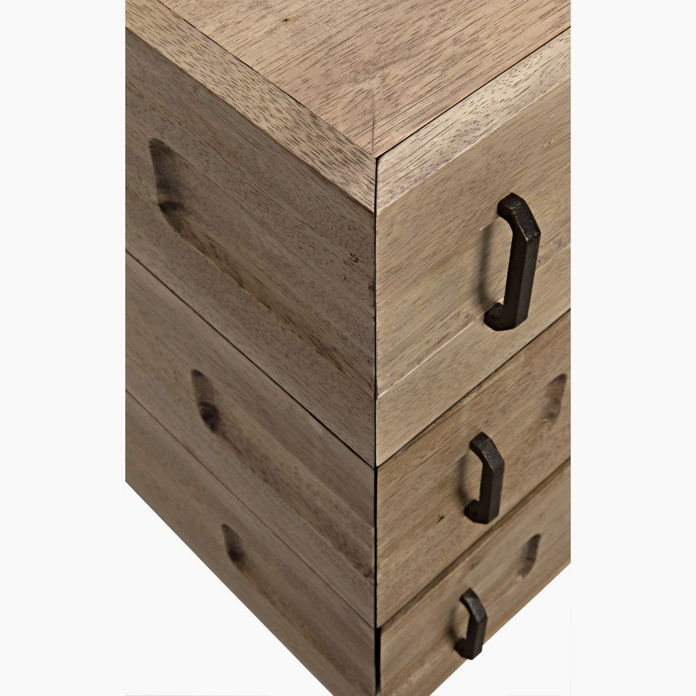 Deceptively rustic and rough-hewn, this primitive side table's sophisticated side is subtler. But look a bit closer and you can't miss simple beauty in its construction, the elegance in its tapered legs, and the refinement in its design details.