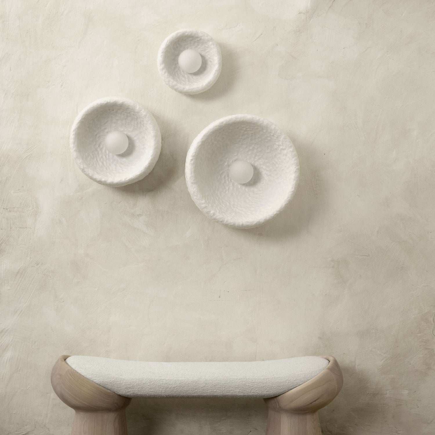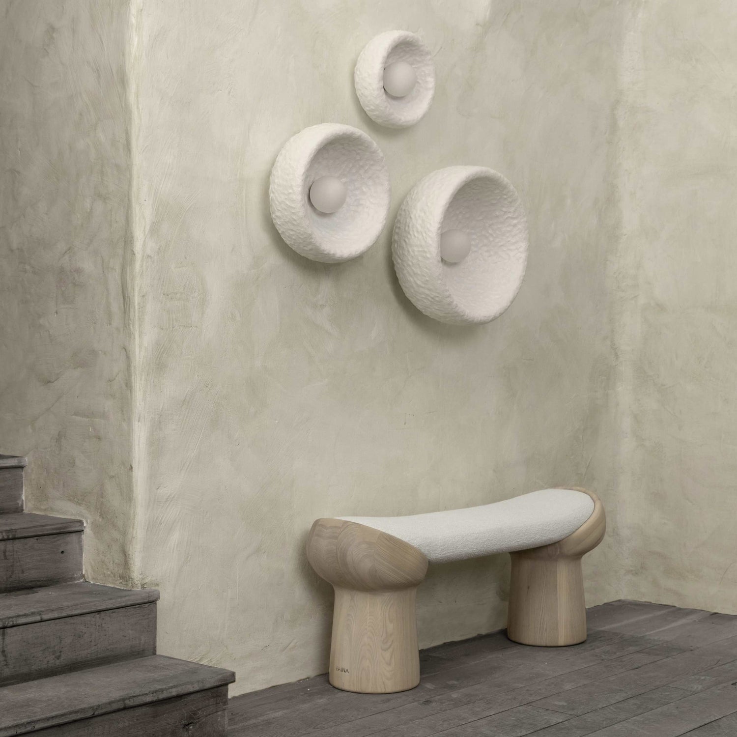 "Soniah" in Ukrainian means "sunflower", one of the national symbols. Soniah Big Wall lamps reach the sun with an open shade that fills the space with light. It can stand alone or with others of its kind. Hand-crafted by blending organic materials, Soniah has a vivid tactile surface.