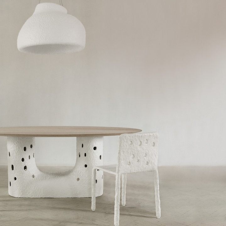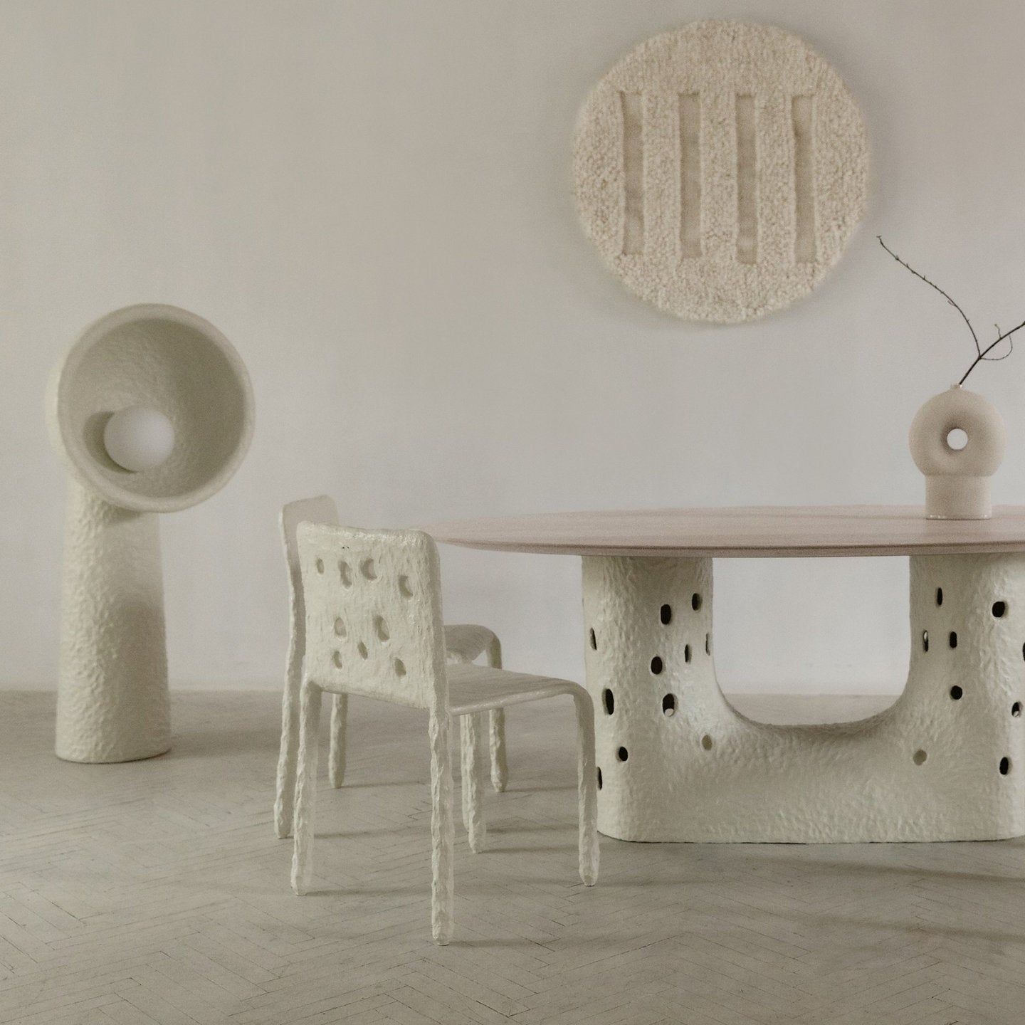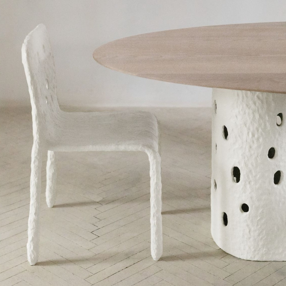 'ZTISTA' means 'made of dough' in Ukrainian. Combining a modern plastic silhouette with a primitive, kneaded form, this chair, as its name suggests, takes us back to our childhood days of making imaginary objects out of clay. It is also suitable for outdoor use, and can be stacked for storage, providing excellent space utilization.