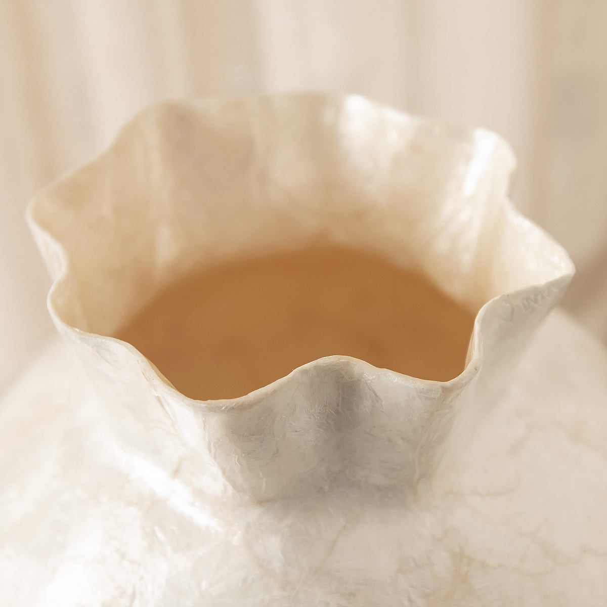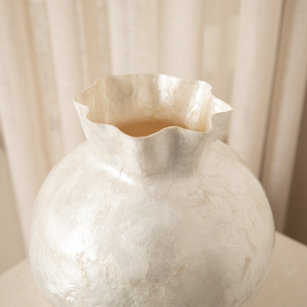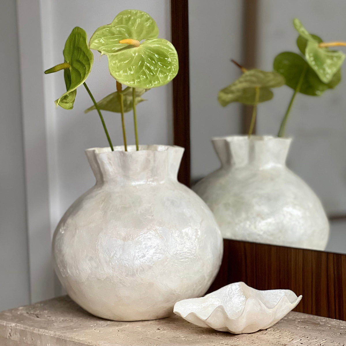 Skillfully handcrafted natural Capiz shell found in the seas of the Philippines. Over centuries this craftsmanship has been practiced and ingrained in Filipino craftsmanship. This beautiful organic material offers a translucent and natural shimmering iridescence.