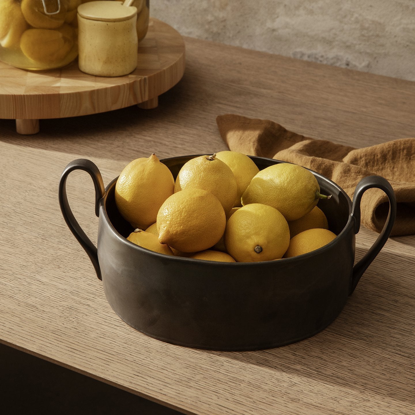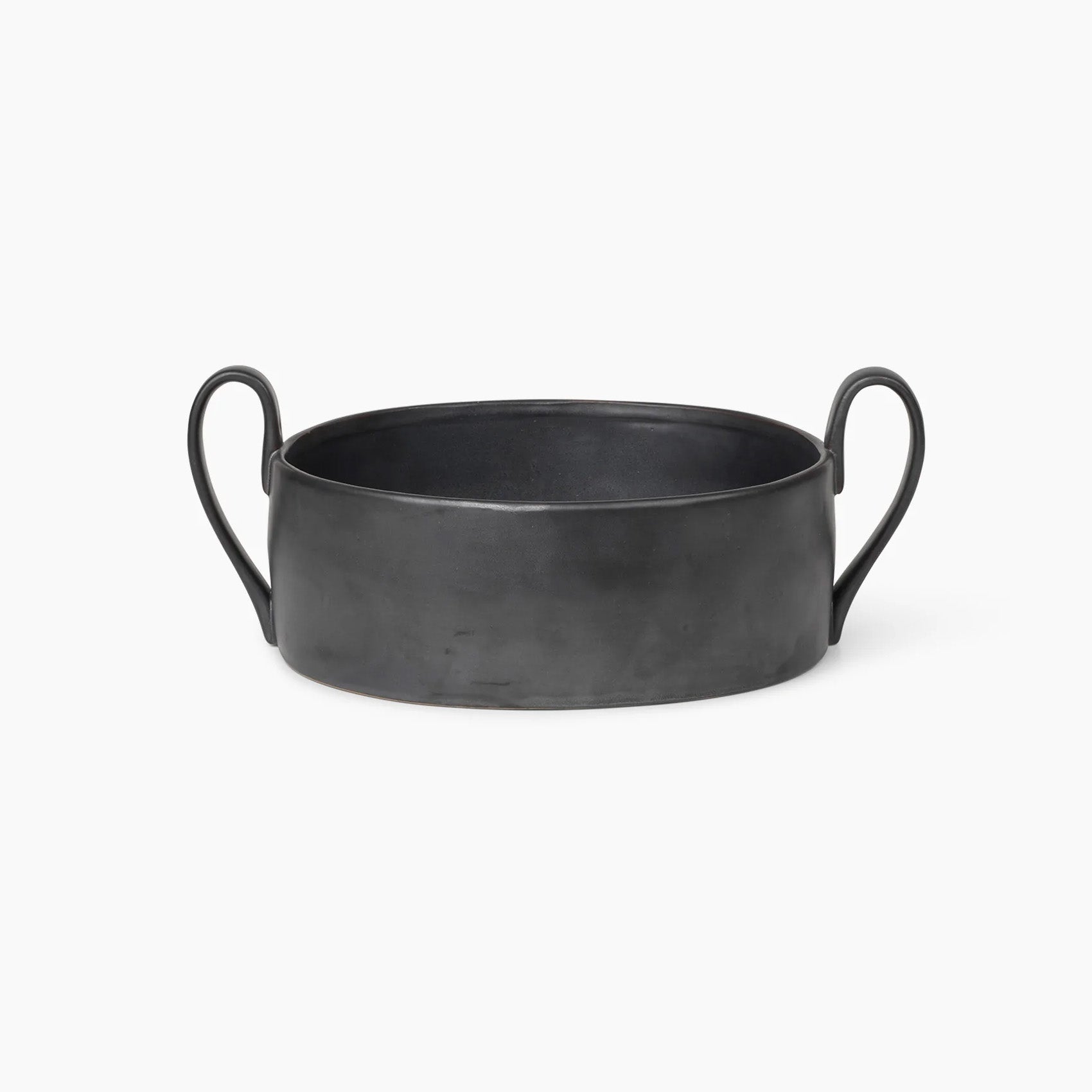 Flow is a series of perfectly imperfect tableware made to modern sensibilities using traditional craftsmanship techniques. All the items are detailed with a semi-matte glaze for a unique expression. The simple, clean lines of this large bowl are offset with two distinctive elongated handles that are sure to make this the central piece of any table setting.