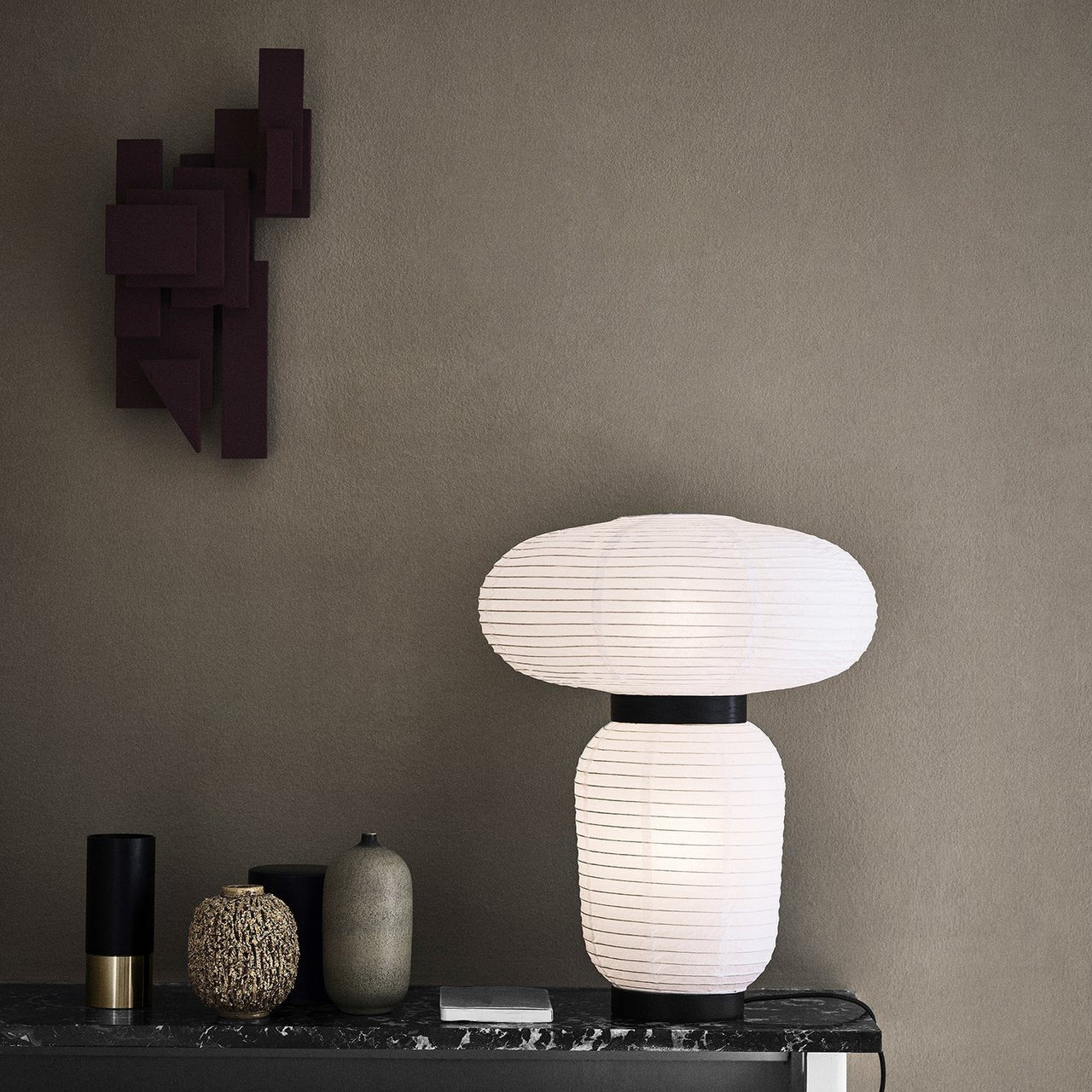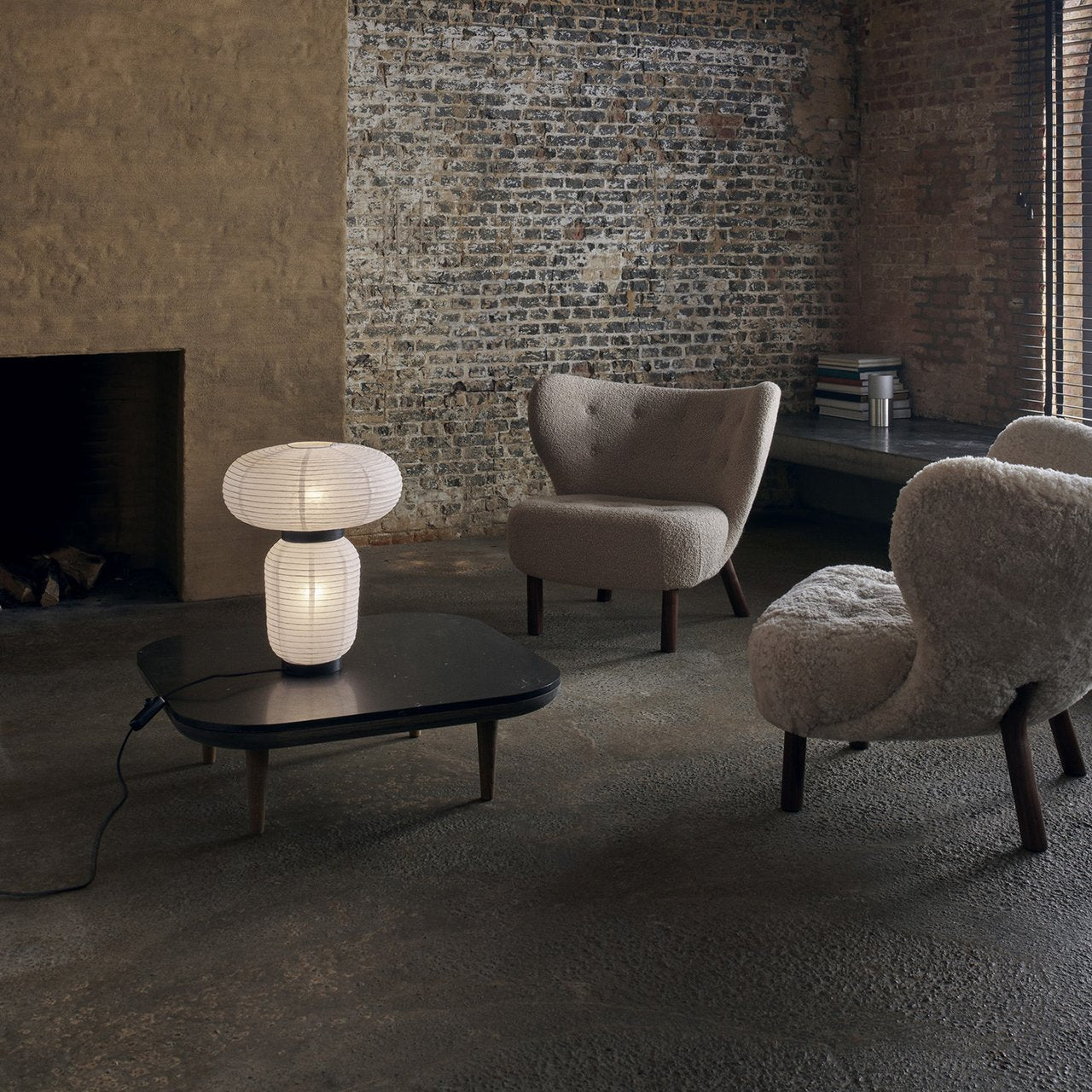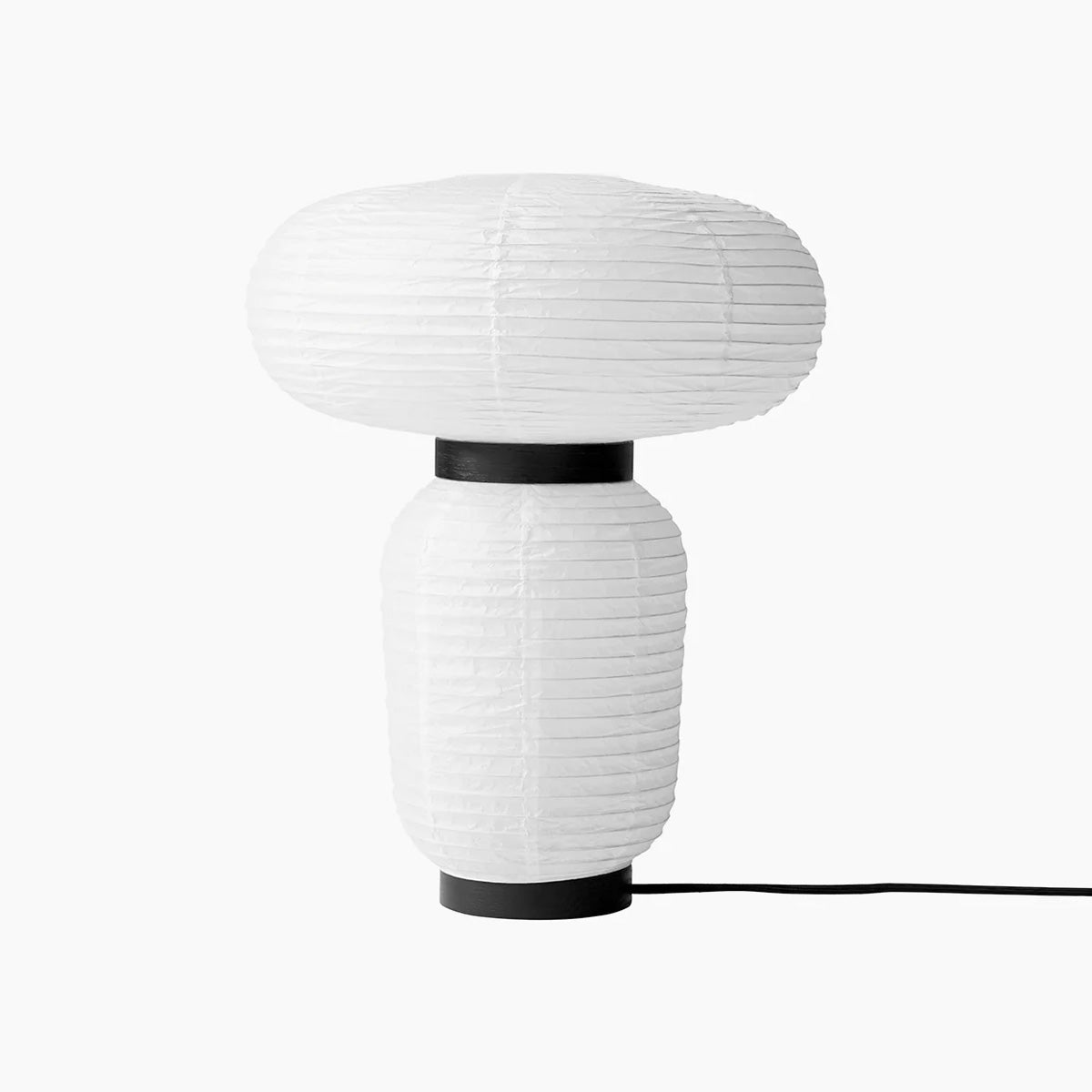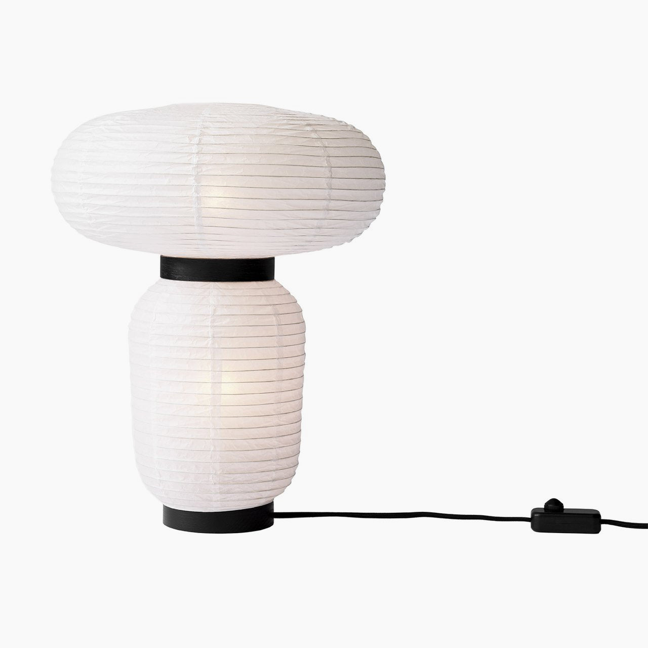 Formakami's rounded shapes are crafted in ivory white rice paper with black lacquered-ash accents and make for an impressive table lamp in Jaime Hayon's lighting series for &Tradition. By turns, Asian-inspired and Scandinavian-influenced, the fusion of different aspects of those cultures evolve into a singular eye-catching design. The result is a glow of ambient light emanating from a slightly mysterious form that, even switched off, adds a notable visual interest to a room.