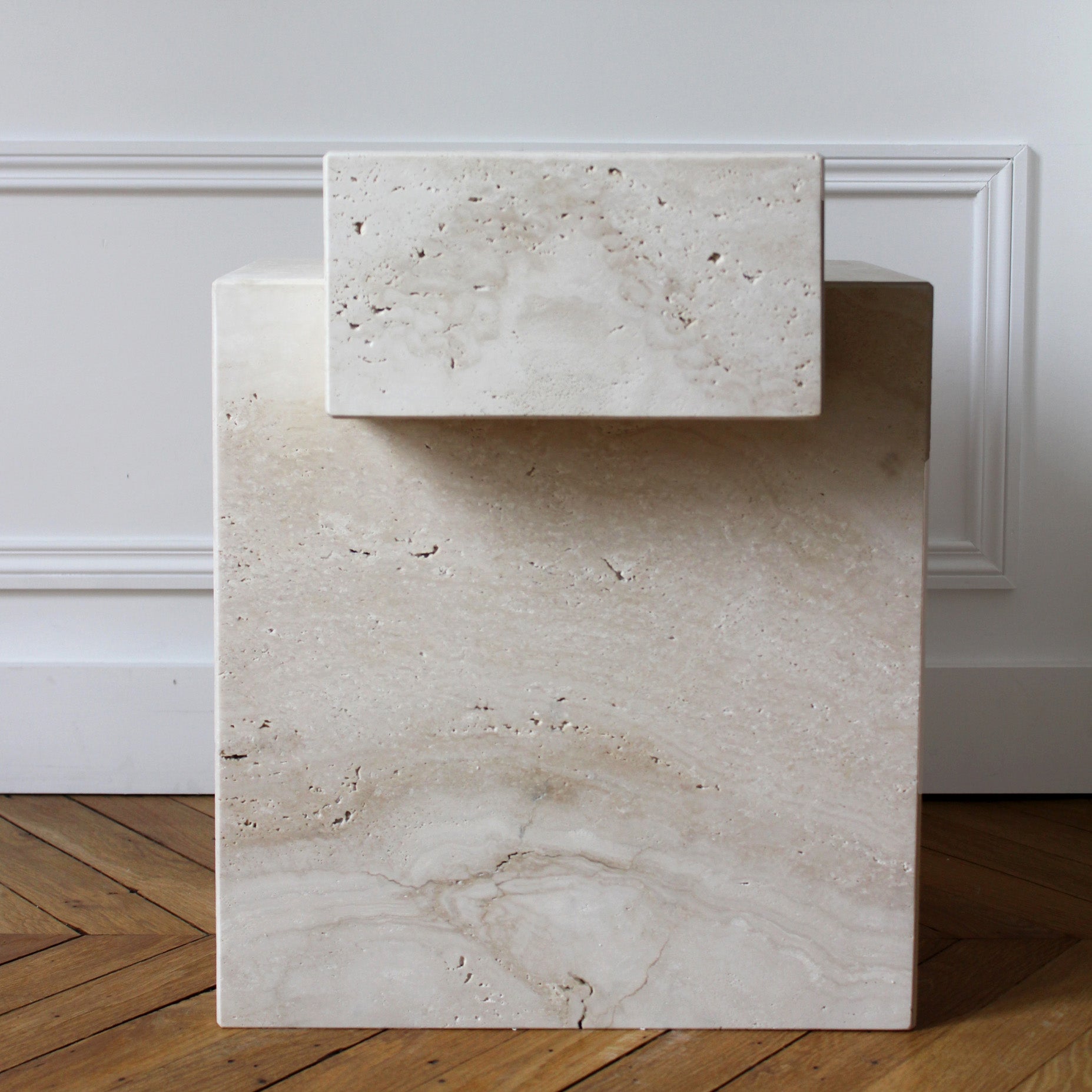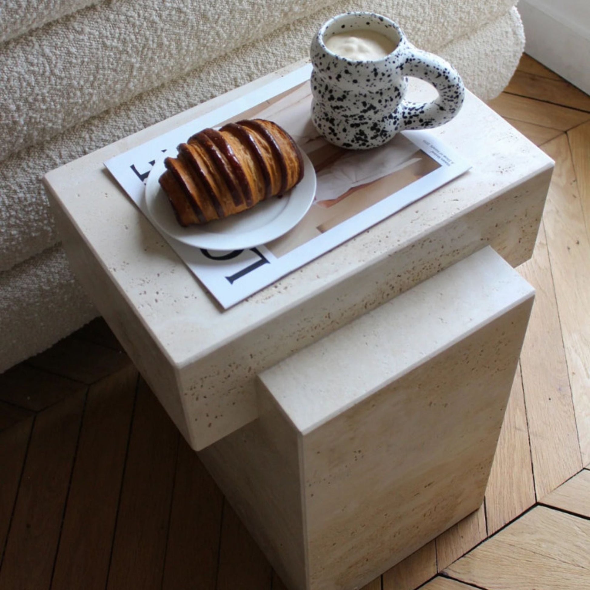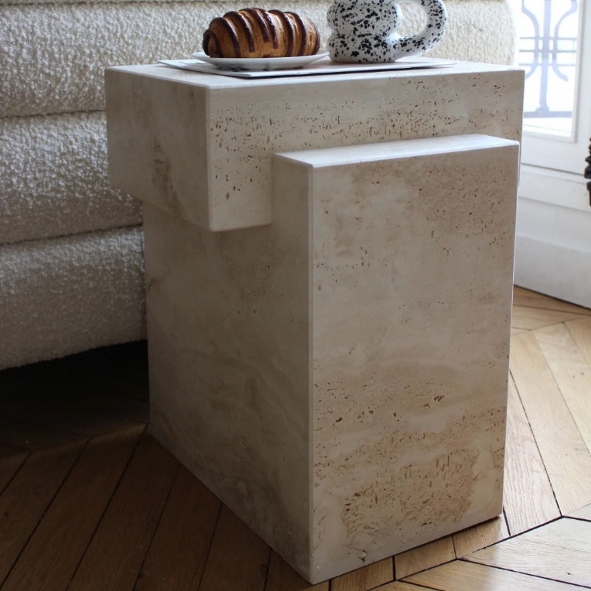 The Gaia table is characterized by its massive side which is representative of the idea we have of the stone. This model respects perfectly the purity and simplicity of the materials used. Its minimalist and timeless design will add an aesthetic aspect to your interior. straight lines, cubic and rectangular shapes, this piece is a true work of art. This table can be used as a bedside table, side table, or decorative object.
