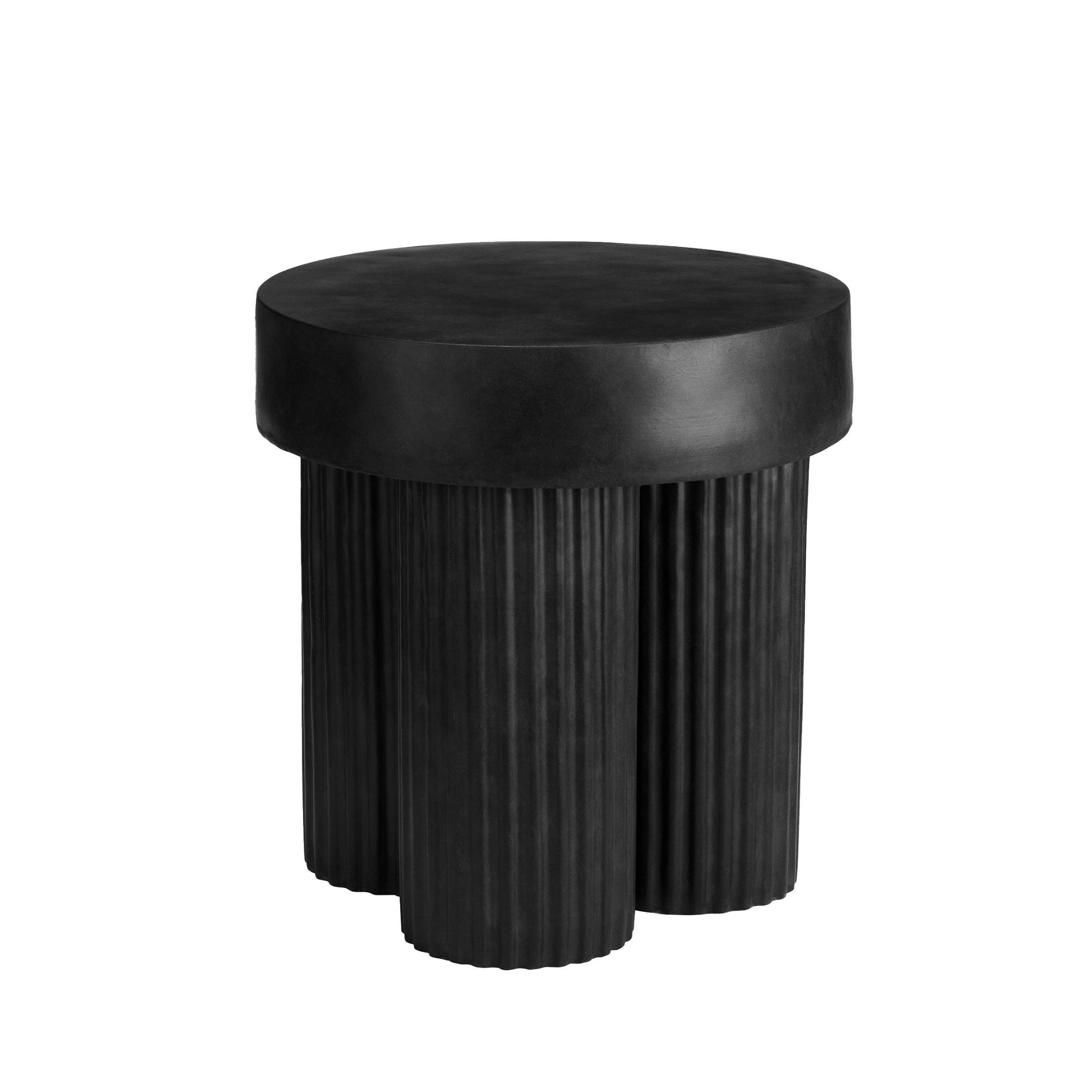 The gear table has a round table resting on three cylindrical legs. The legs feature grooved detailing and add a stylish, organic signature to the design. The Gear coffee table is cast from lightweight fiber concrete with a unique, tactile surface texture.