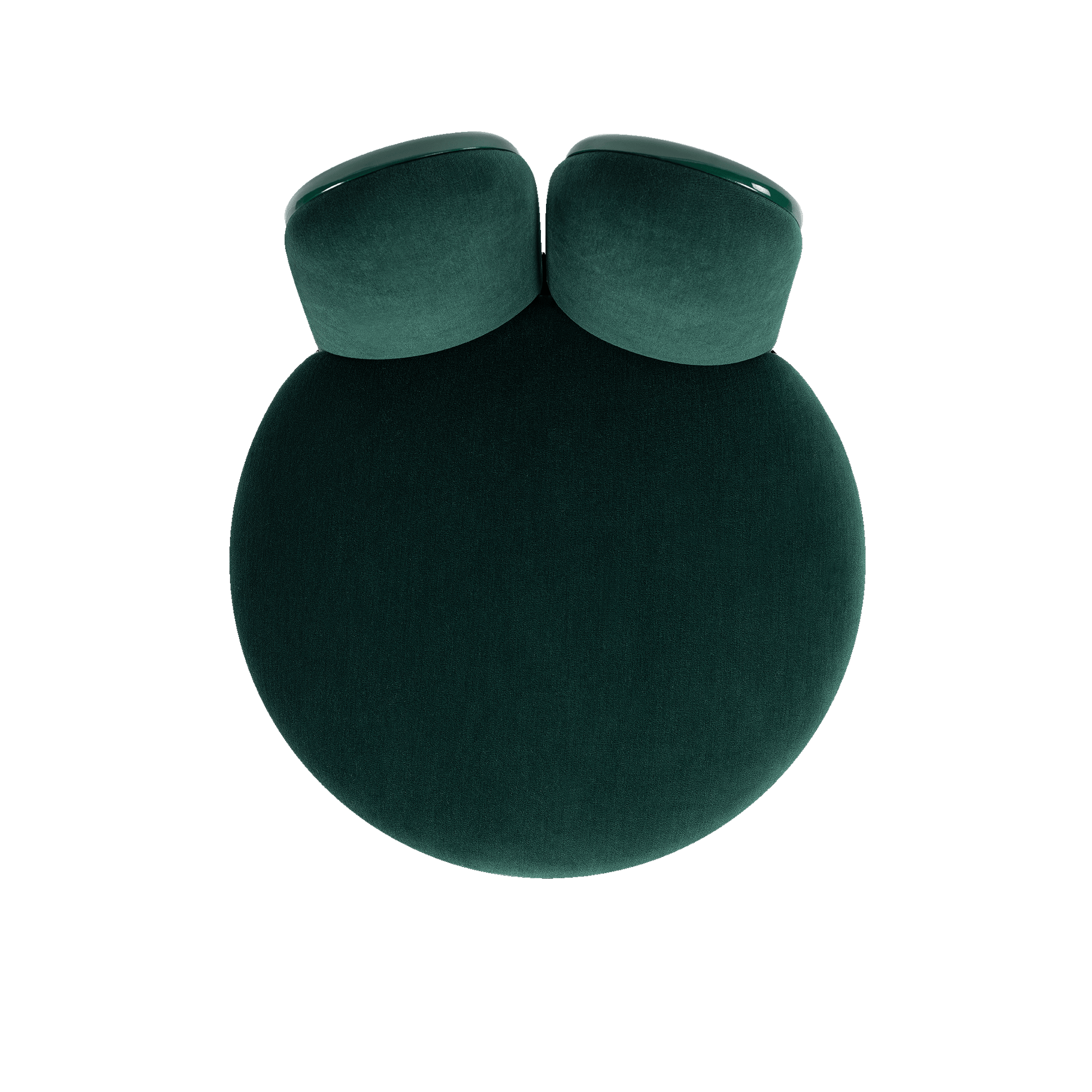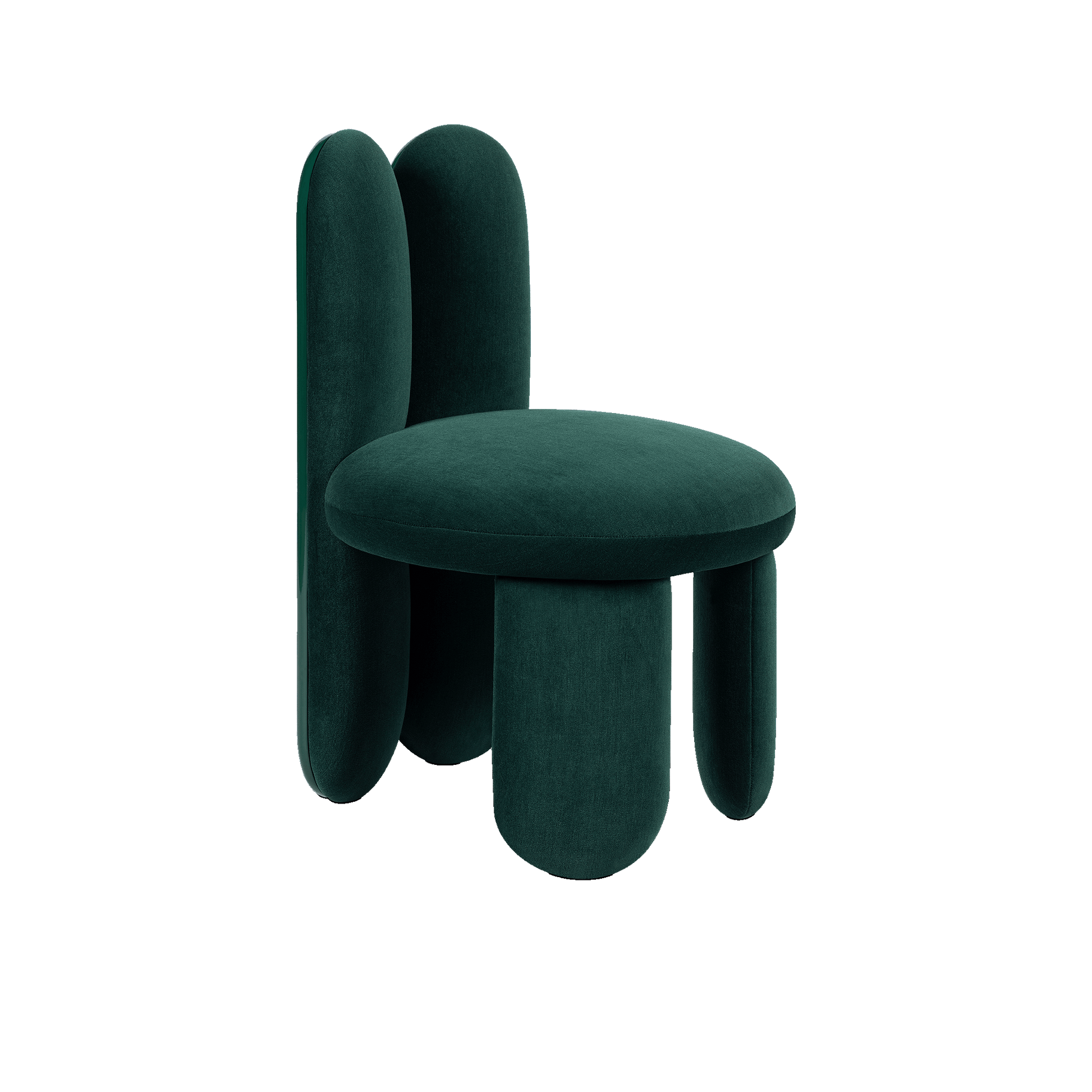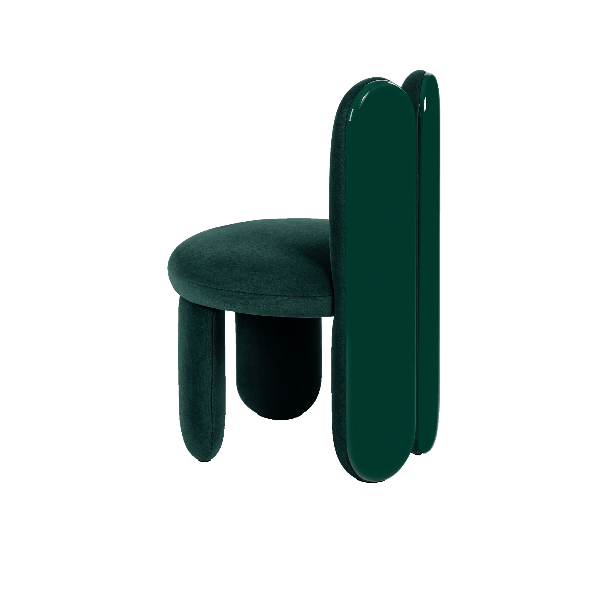 Step into a world of eye candy furniture with Glazy Chair. There is a groovy feeling to the rounded lines defining its round seat, backrest, and legs. An irresistible furniture piece where velvety upholstery playfully meets a glazed back finish. Glazy Chair is the icing on the cake of your interior designs.