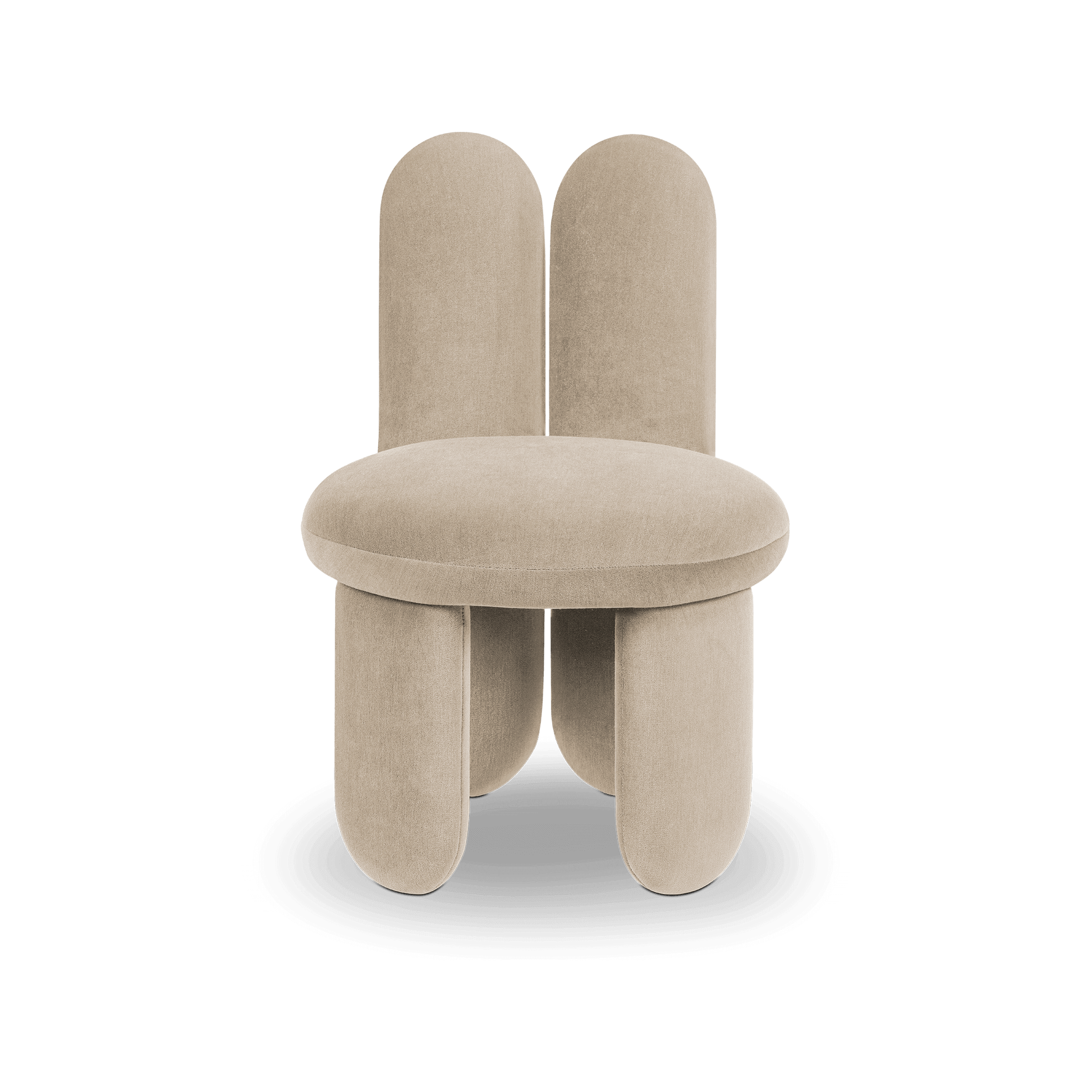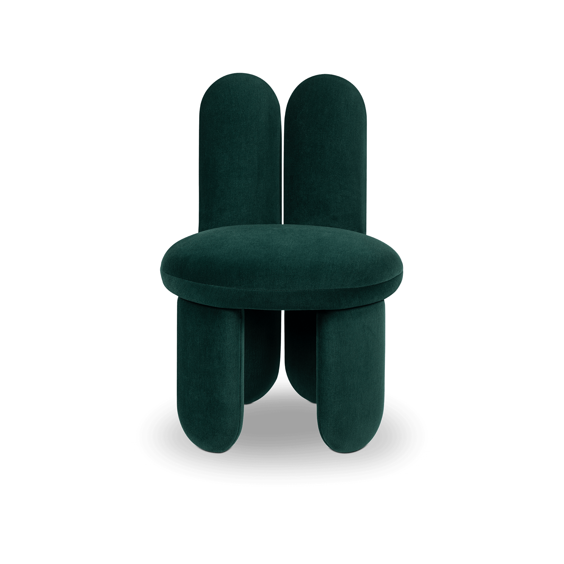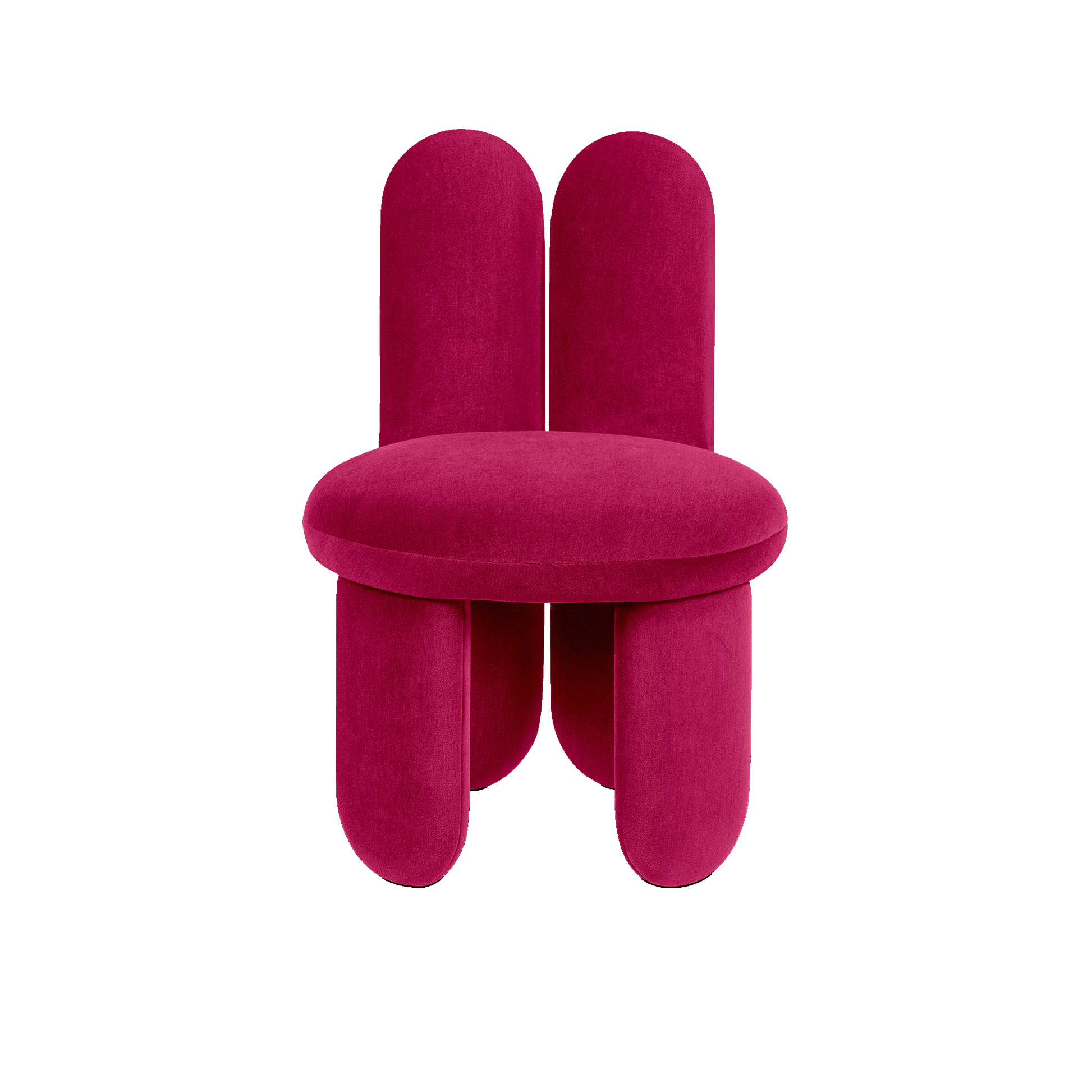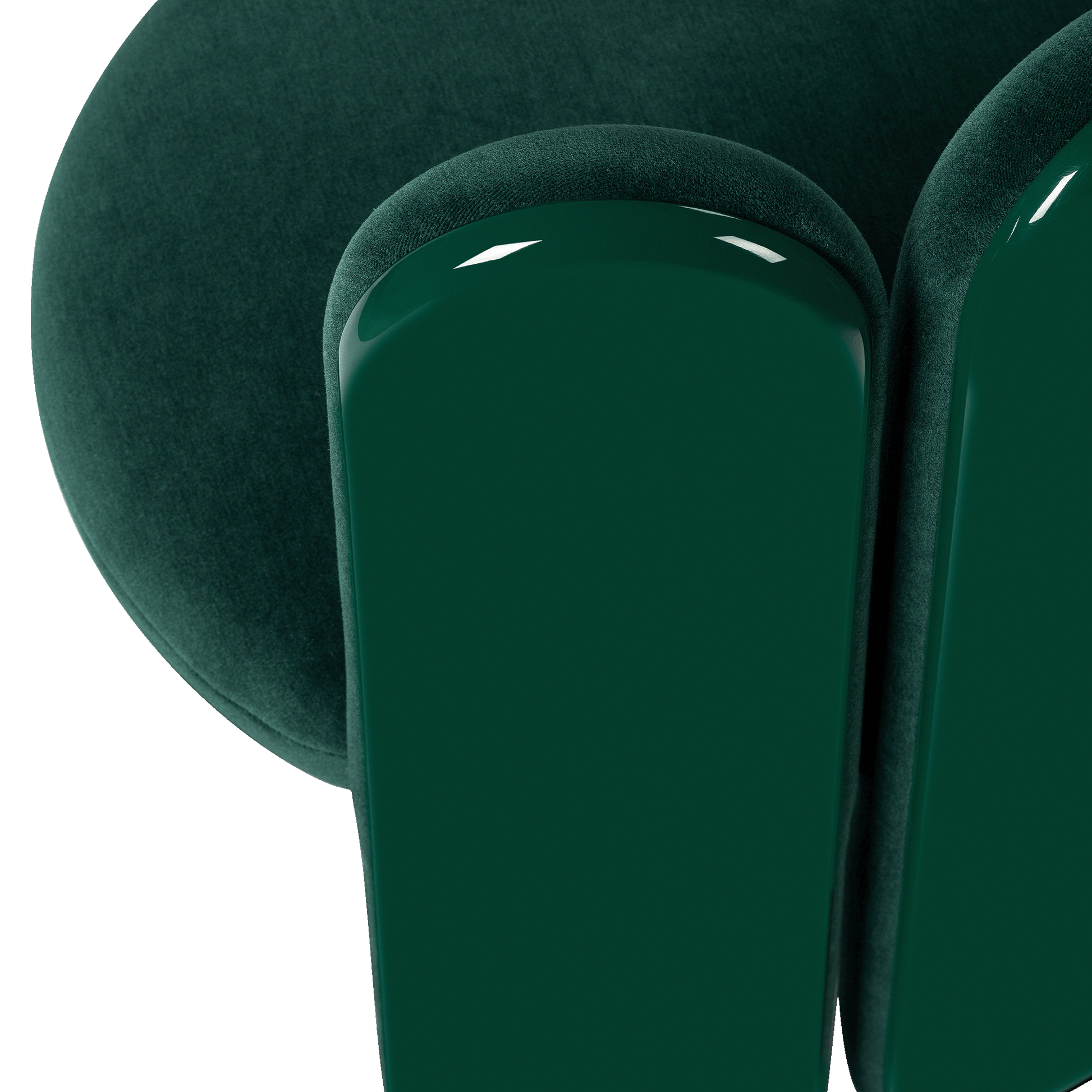 Step into a world of eye candy furniture with Glazy Chair. There is a groovy feeling to the rounded lines defining its round seat, backrest, and legs. An irresistible furniture piece where velvety upholstery playfully meets a glazed back finish. Glazy Chair is the icing on the cake of your interior designs.