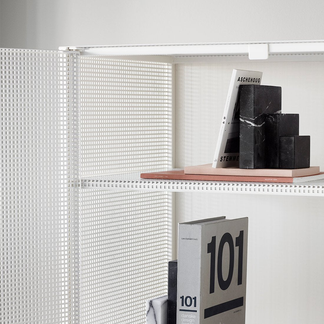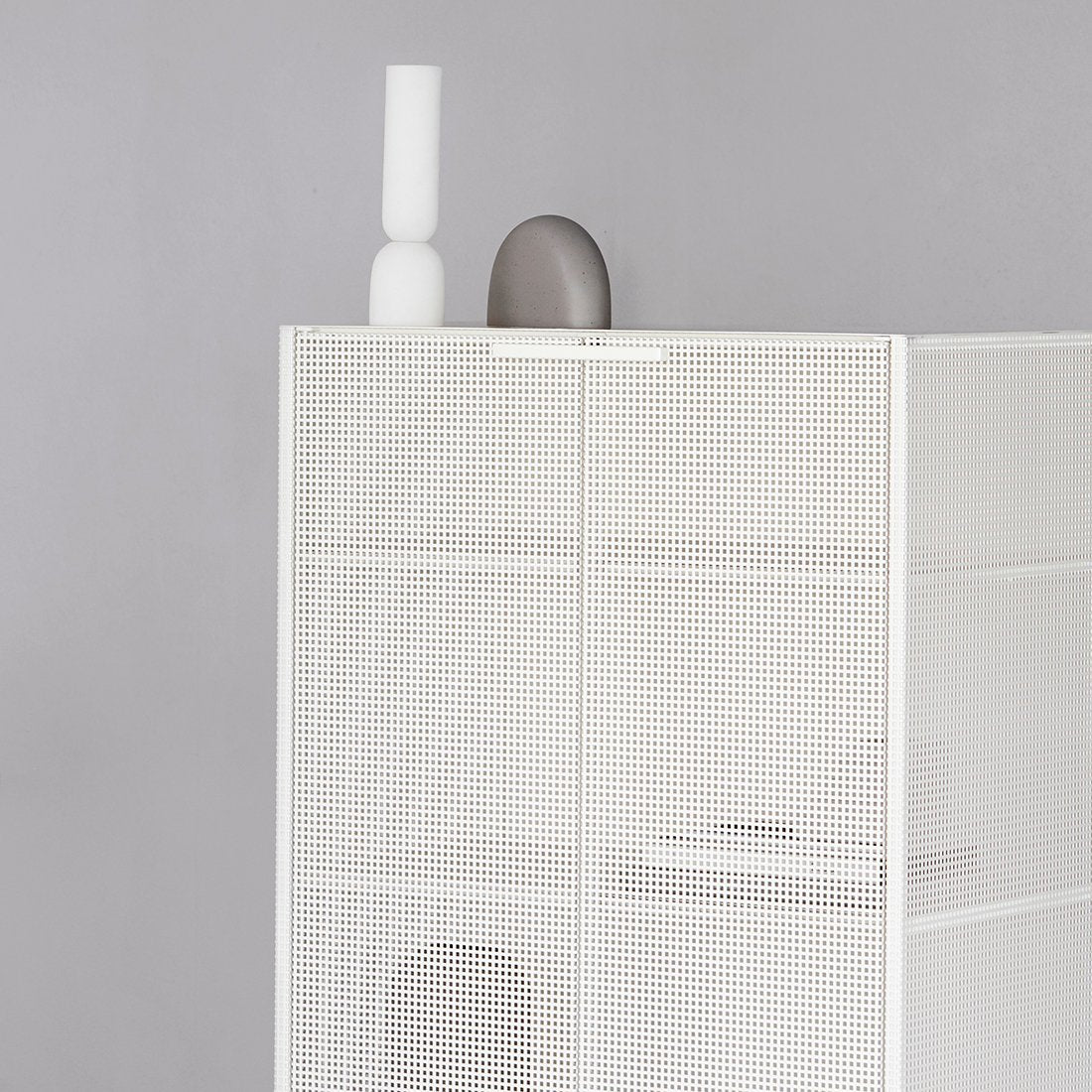 Despite its large size the Grid Cabinet appears light and agile. The allure of the perforated steel surfaces lets you see the silhouettes of the items stored inside. A perfect opportunity to curate a lovely vignette of your dearest belongings. The Grid Cabinet is the ideal storage solution for the contemporary home.