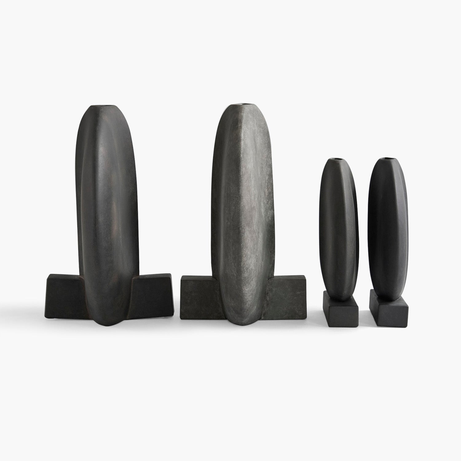 Guggenheim is a series of sculptural ceramic vases based on archetypal geometry. The transition between merged geometry, sharp lines and thin silhouettes creates decorative optical illusions. The texture of the handmade surface beautifully catches the light, and becomes an artistic object in the space.