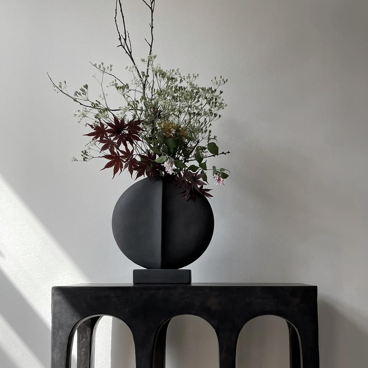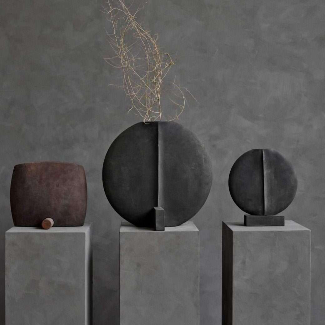 Guggenheim is a series of sculptural ceramic vases based on archetypal geometry. The transition between merged geometry, sharp lines and thin silhouettes creates decorative optical illusions. The texture of the handmade surface beautifully catches the light, and becomes an artistic object in the space.