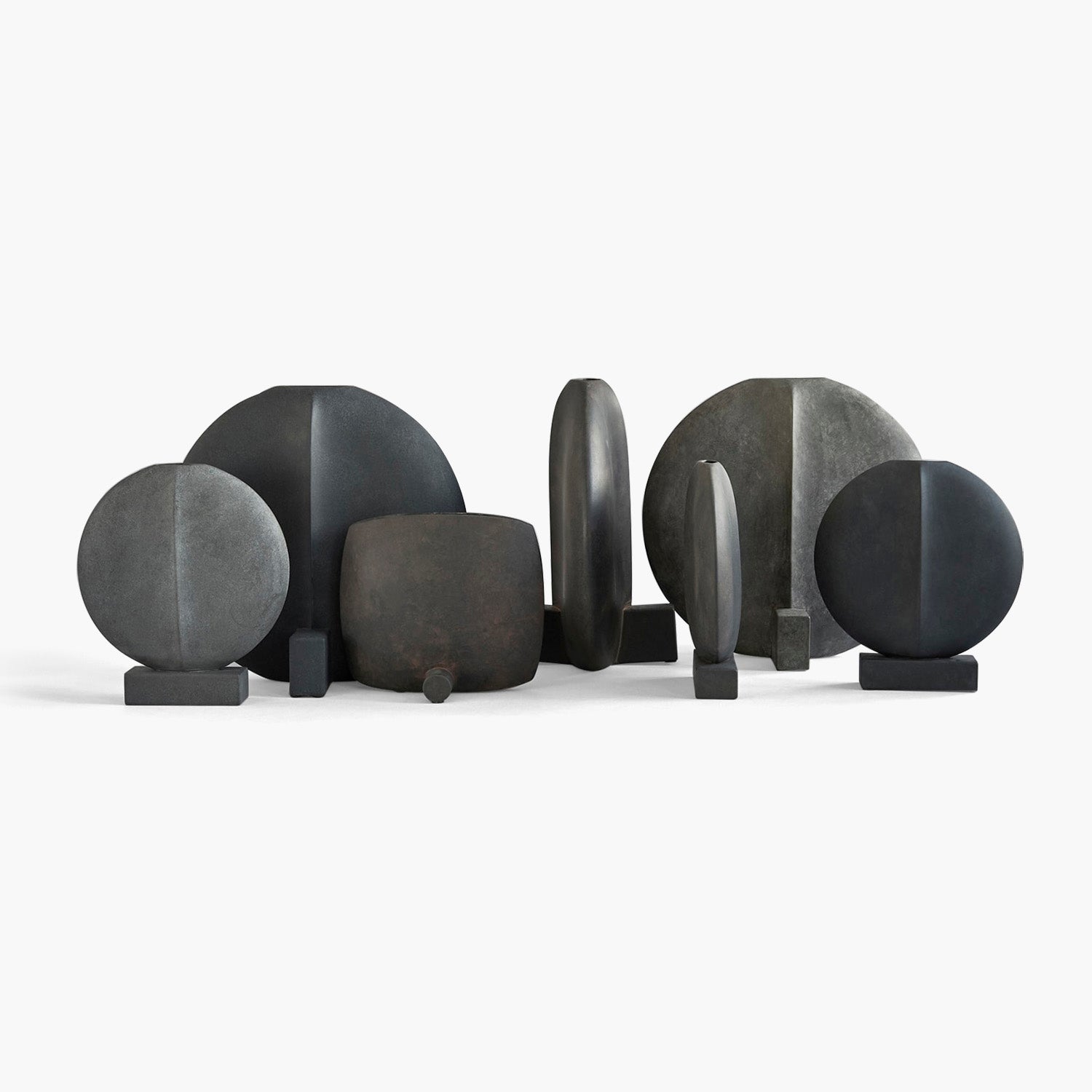 Guggenheim is a series of sculptural ceramic vases based on archetypal geometry. The transition between merged geometry, sharp lines and thin silhouettes creates decorative optical illusions. The texture of the handmade surface beautifully catches the light, and becomes an artistic object in the space.