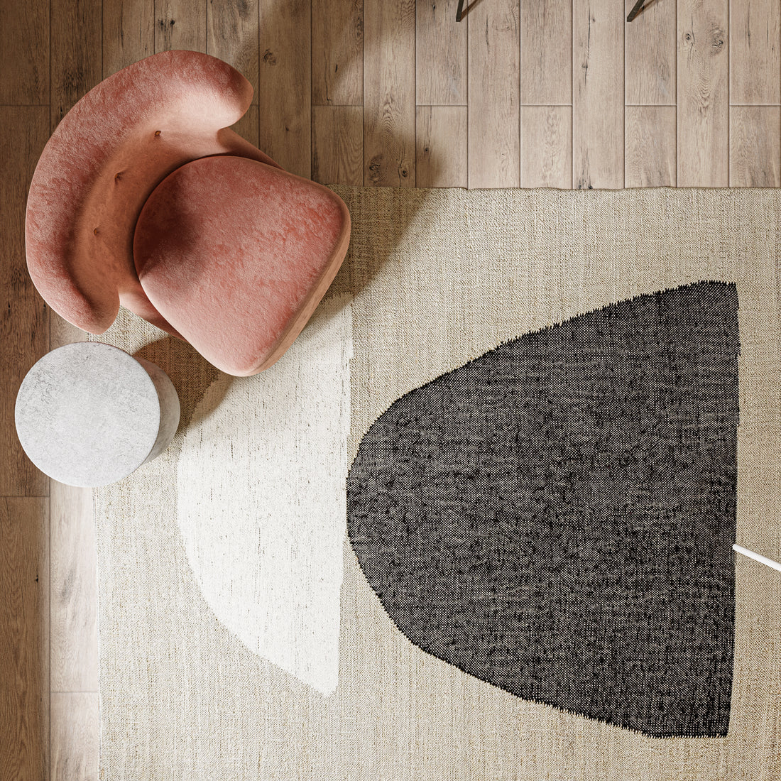 Hand Woven of 100% Jute. Grounded in the beauty of raw materials, the Gurara collection’s tones and textures are inspired by Brancusi. The interwoven pattern, constructed of jute, varies in its colors and shapes but is always connected by the maker’s technique.