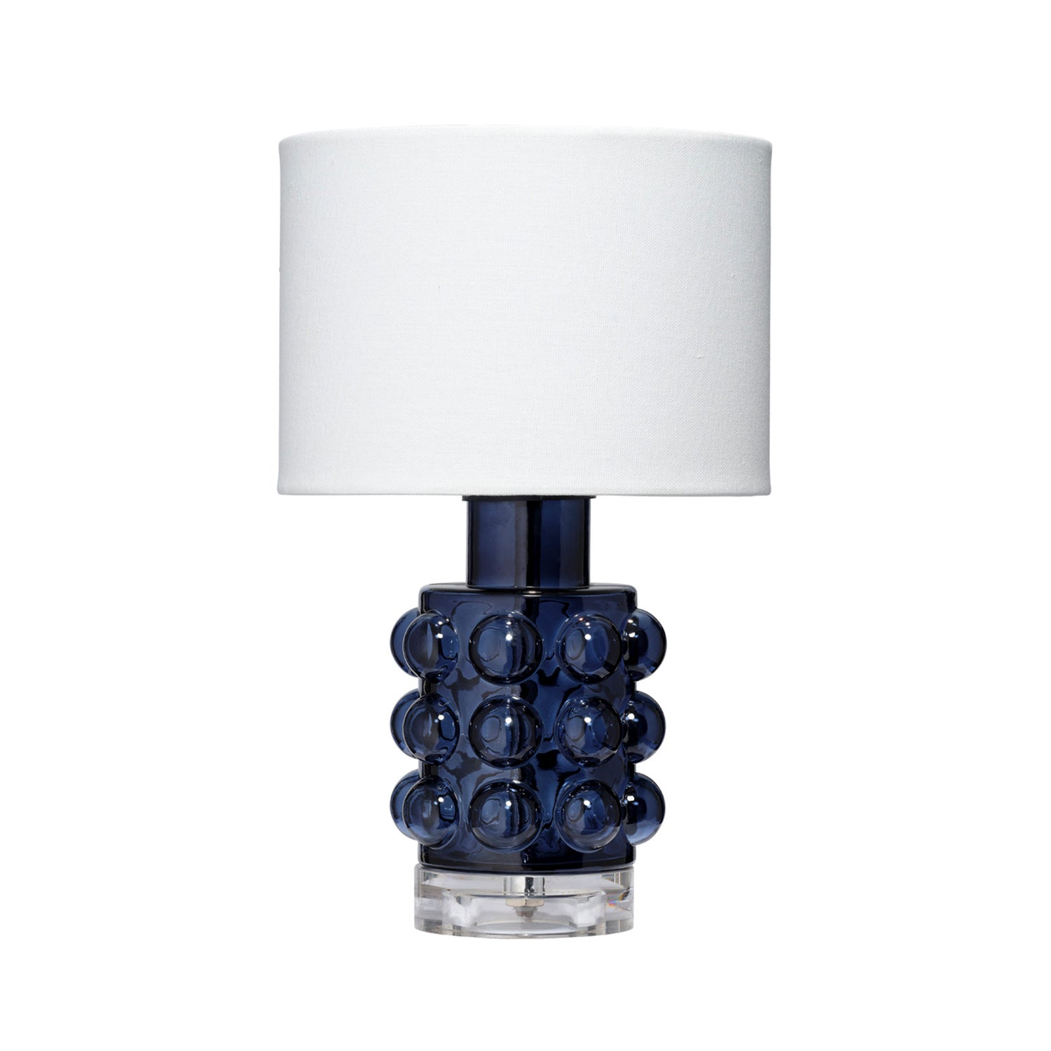 Take a walk on the sparkling side with this fun, and beautifully handcrafted, glass table lamp! Inspired by the effervescent bubbles in a freshly poured glass of seltzer, it will refresh your décor as easily the beverage does you on a warm summer day. The cobalt base rests on a contrasting circle of clear glass, and the cherry on top? An off-white linen drum shade.