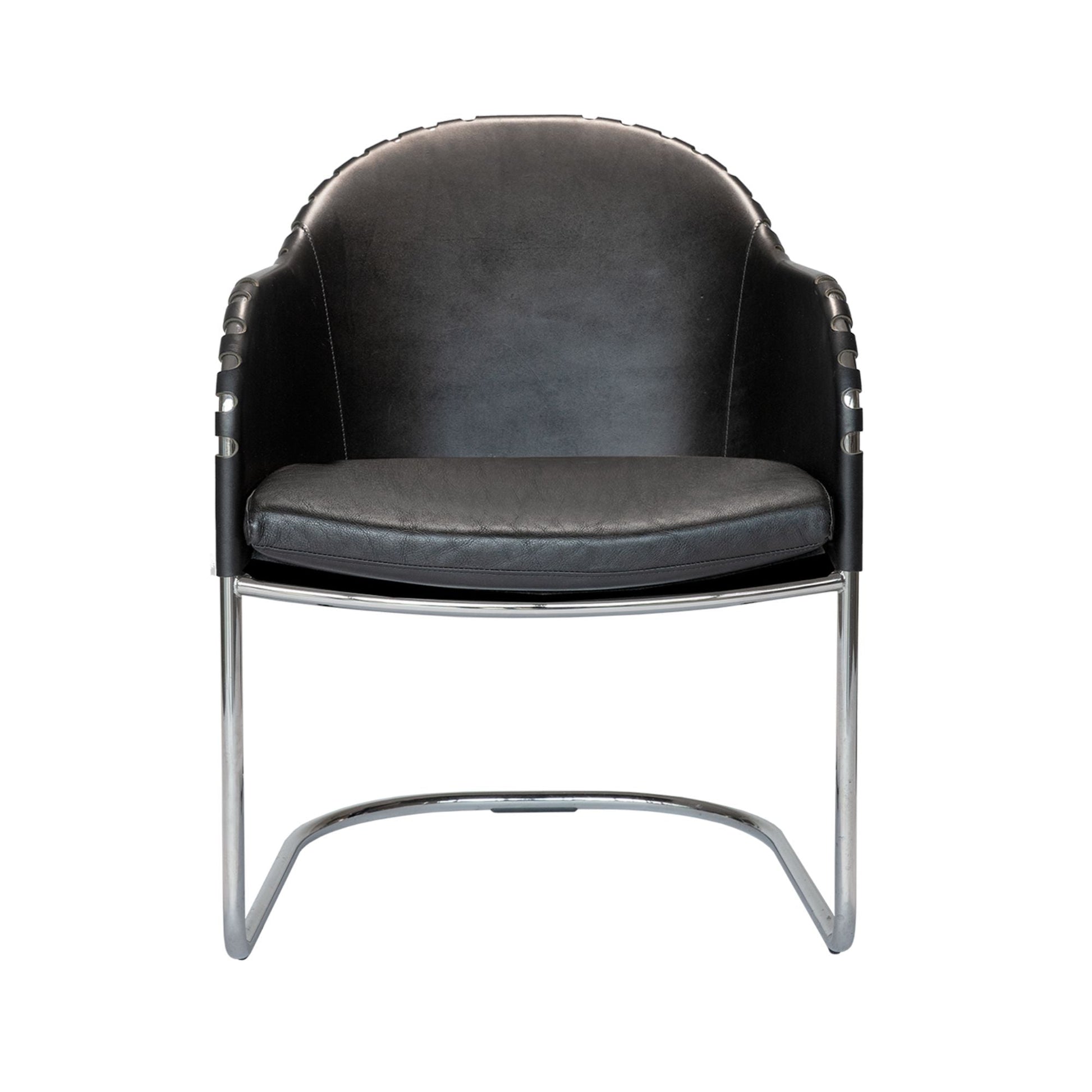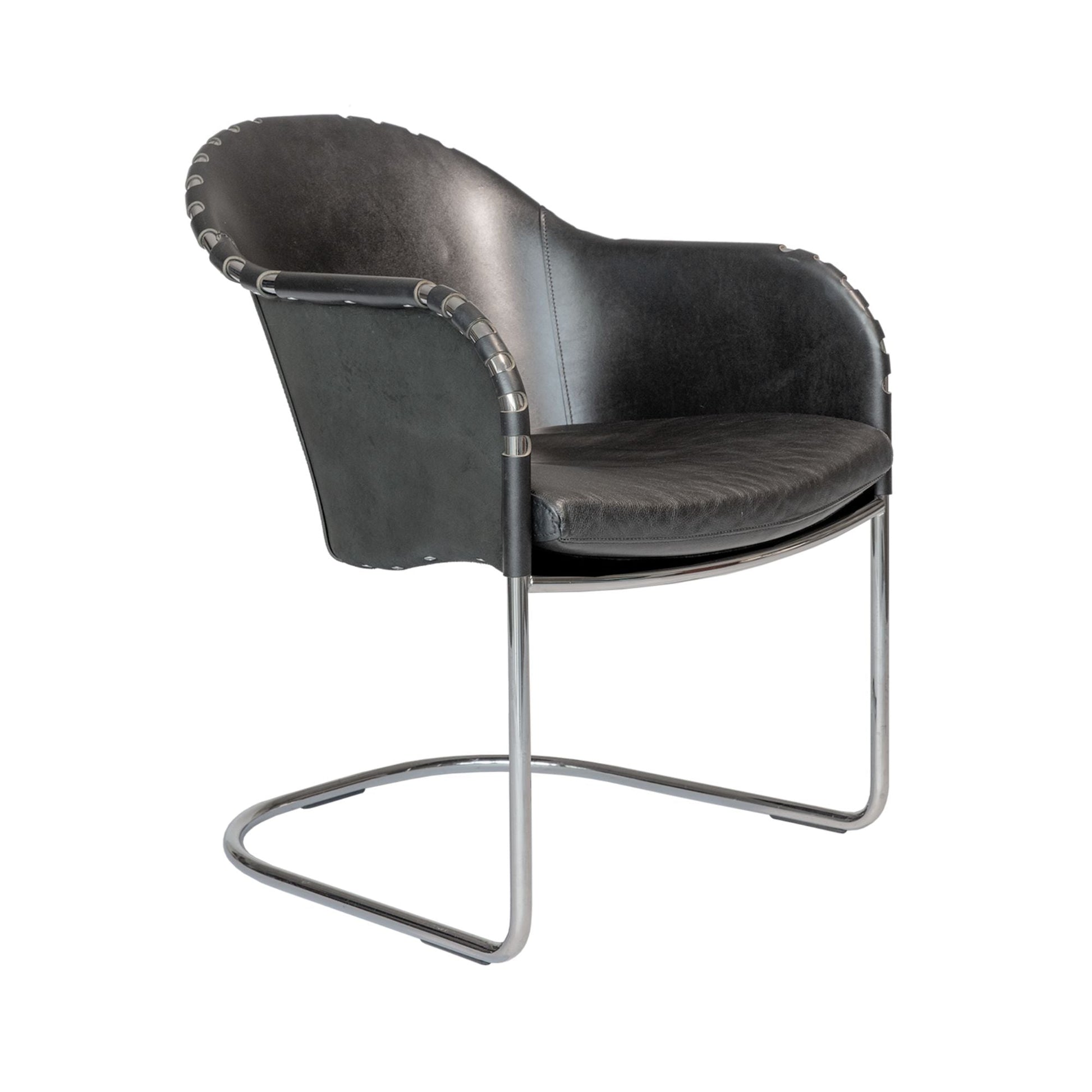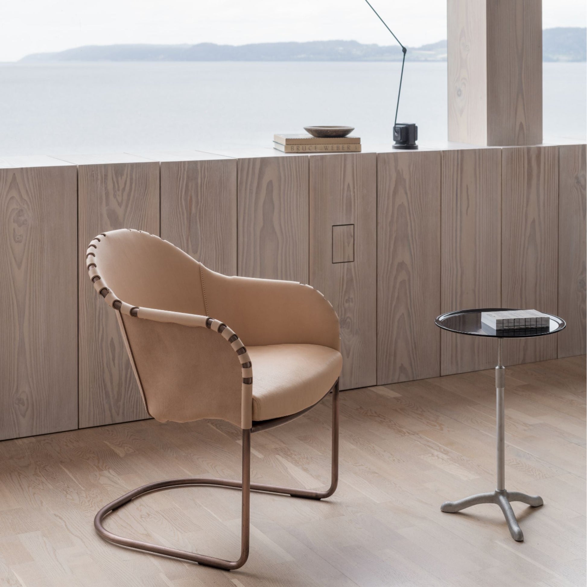 The armchair Ingo was designed in 2014 by Mats Theselius for Källemo. Ingo has a bent steel stand that is available in five different designs, all of which are covered in riveted core leather from Tärnsjö and have a seat in latex foam. The fine leather from Tärnsjö Tannery preserves the skin's structure, which gives all leather parts their own unique patina and adds charm to Ingo's otherwise industrial look.