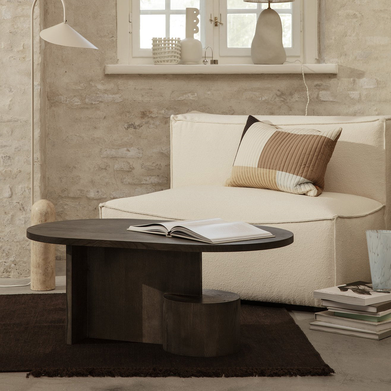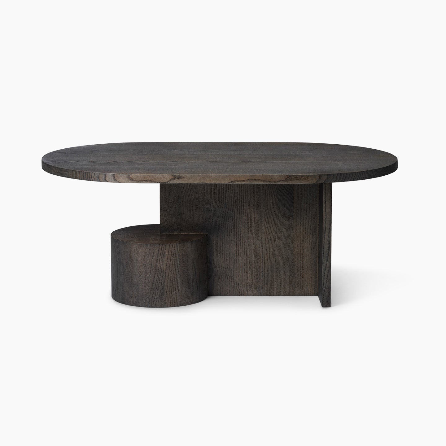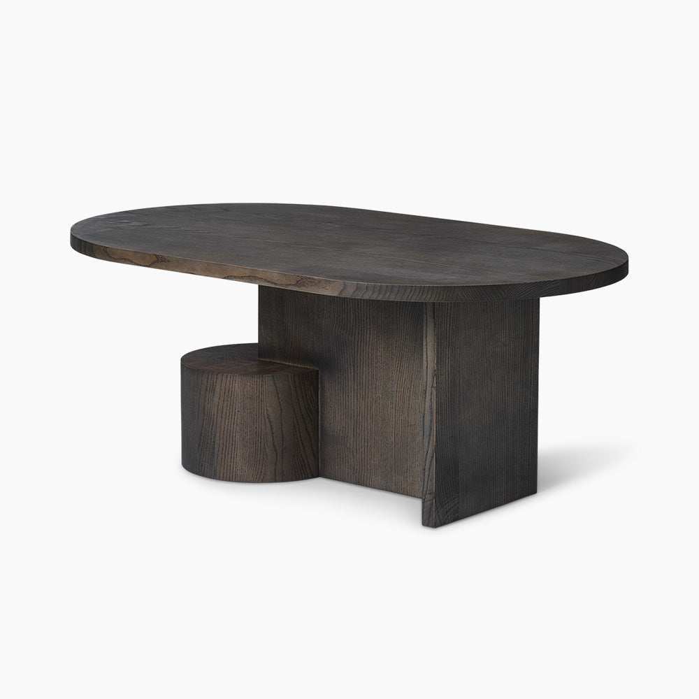 Crafted from solid ash, the Insert Coffee Table is a sturdy yet sculptural piece. Playing with multiple shapes, the oval top rests lightly upon two geometric joints that are anchored by a heavy, cylindrical base. The table is a subtle piece of art in your home that is matched by its functionality as a coffee table.