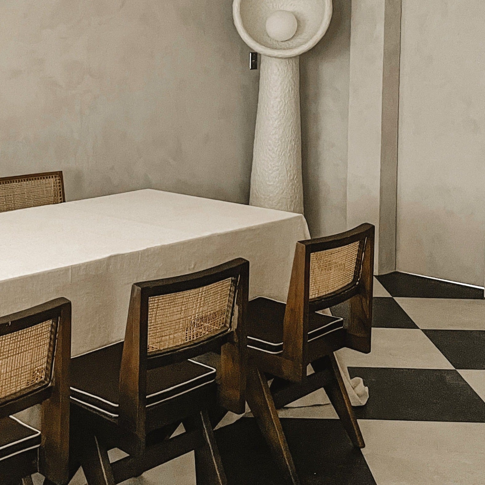 The Jeanneret Armless Dining Chair was initially designed by Pierre Jeanneret for the Chandigarh Administrative Buildings in India, for his cousin and collaborator Le Corbusier.