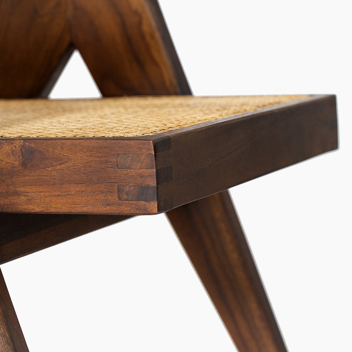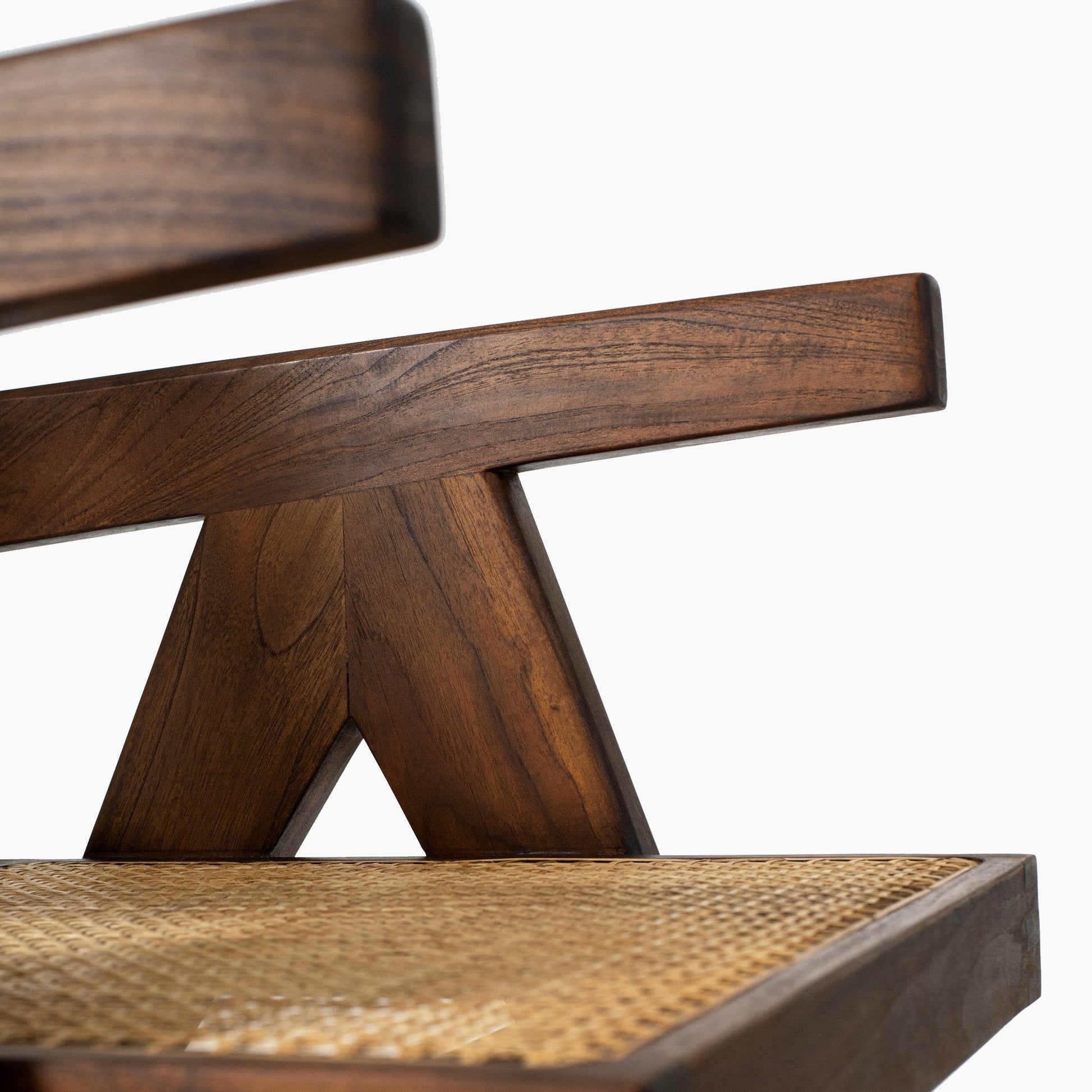 Please note that our Pierre Jeanneret products are all handmade and unique works of art. Each artifact is a one-of-a-kind creation using raw natural materials like rattan cane and teak with slight imperfections and may contain slight staining and color variations. We do our best to maintain consistency, but slight variations in color, size, and shape can occur, which are part of the charm of a handmade product. This part of the handmade process makes our products unique and should not be considered a fault. They will never affect the product’s overall aesthetic and ability to use it as intended.