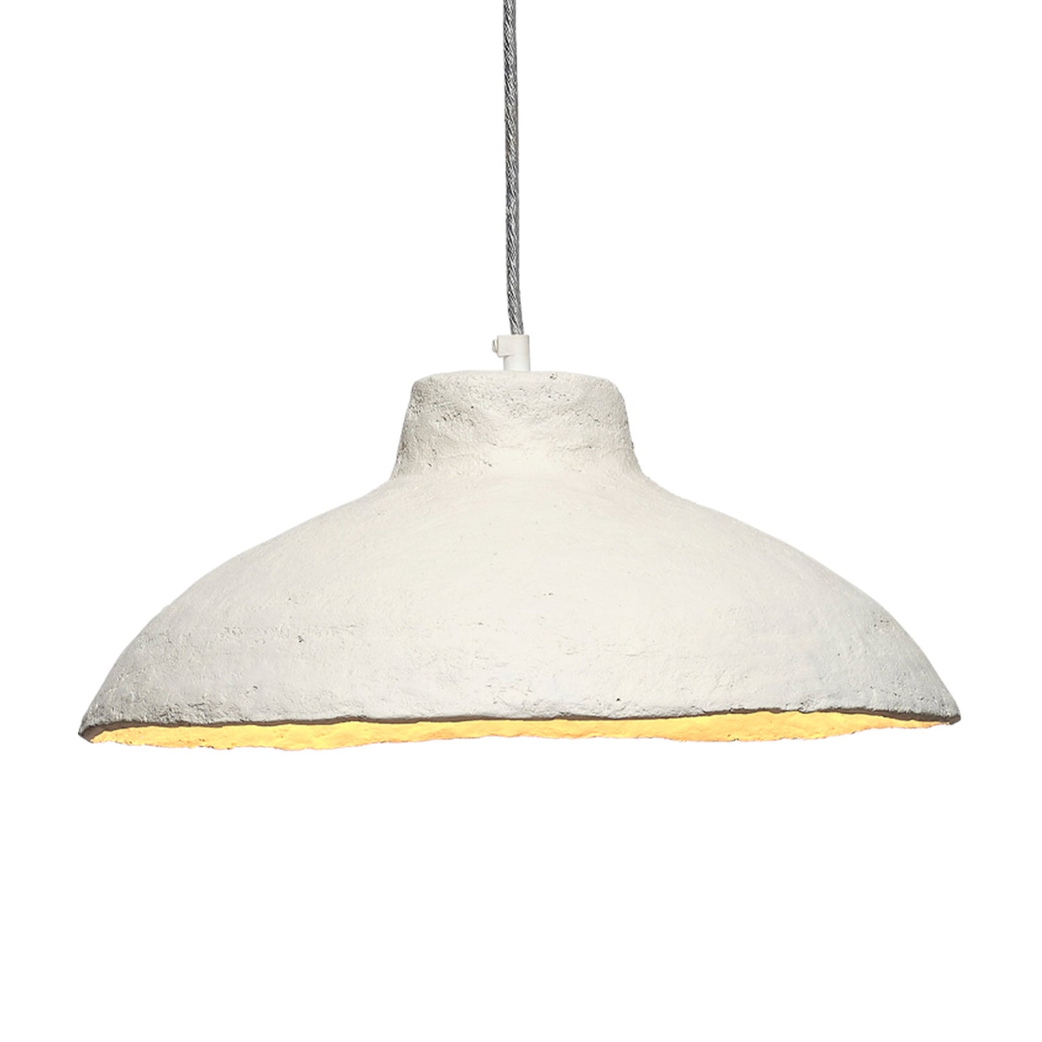 A popular handcraft for generations, papier-mâché has a distinctly organic look and texture that continues to inspire contemporary artisans. We keep it fresh and modern here with pendants in clean, classic shapes in a cloudlike off-white. Arrange three in a row over a kitchen island, or install a grouping over a dining table for a unique twist on the traditional.