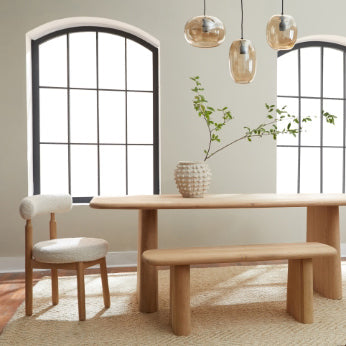 Our Kent Boucle Chair features Oak wood frame wire brushed to bring out its cathedral grain. A high performance textured recycled fabric upholstered seat adds comfort while maintaining the chair’s sharp look.