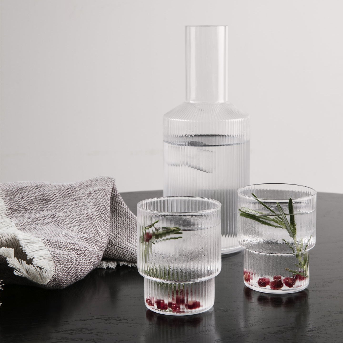 Ripple is a minimalist water glass, to which a vertically striped structure adds a modern element. The fourth set consists of different geometric shapes, which are exceptionally dynamic and look like a stylish interior element that can be stacked. Glass is perfect for special anniversaries, but it also brings a little luxury to everyday life. For an effective result, combine glasses with the same series of carafes and make the serving of drinks especially stylish.