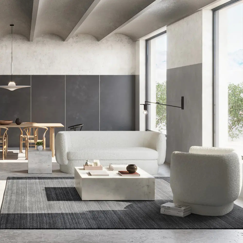 Like sitting on a cloud, the Kuna chair comes in cream white with sumptuous form and curved lines. Foam filling, nozag springs, and solid wood construction make this seat soft and supple simultaneously.