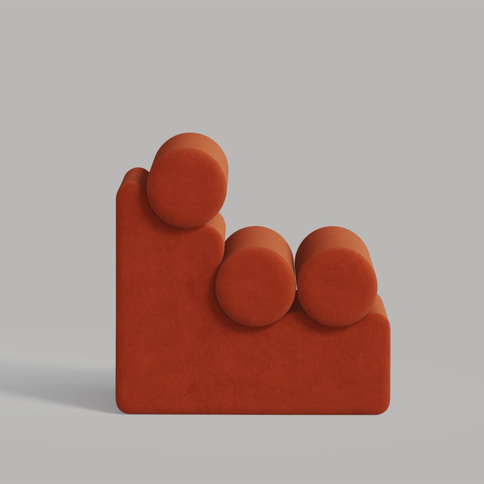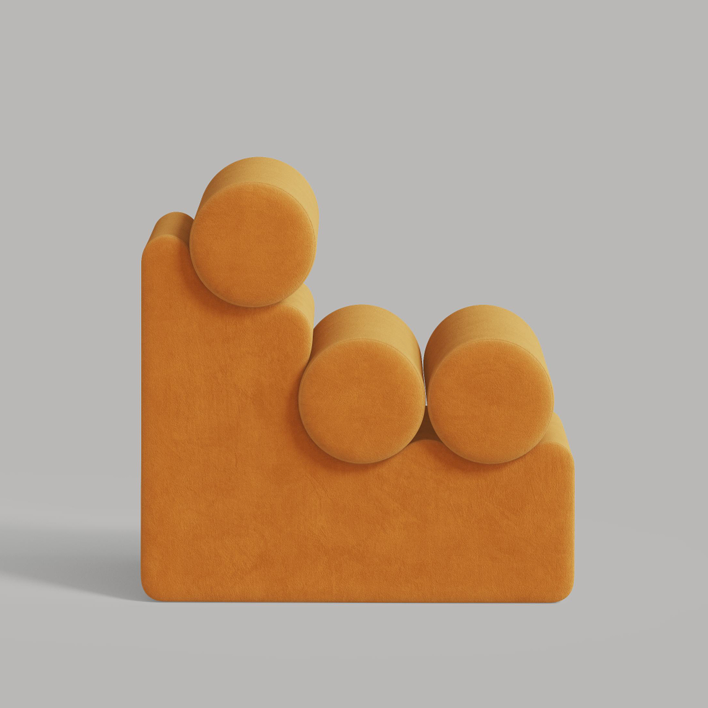 La Pepino is a collection of only seating, which consists of the repetition of cylindrical cushions, supported by an organically shaped base. Every piece comes entirely upholstered in customizable fabric, and plays with the different points of contact between cushion and body.