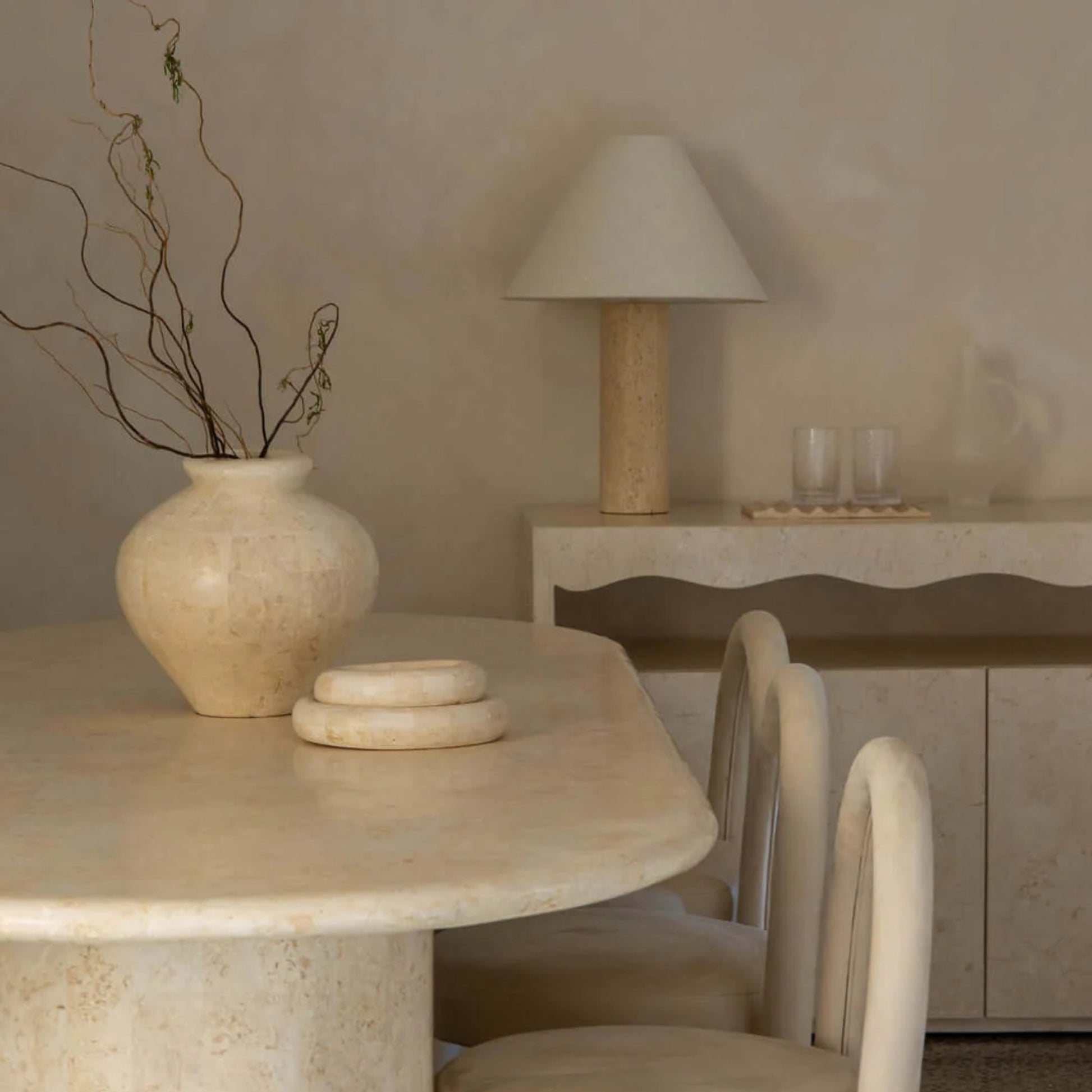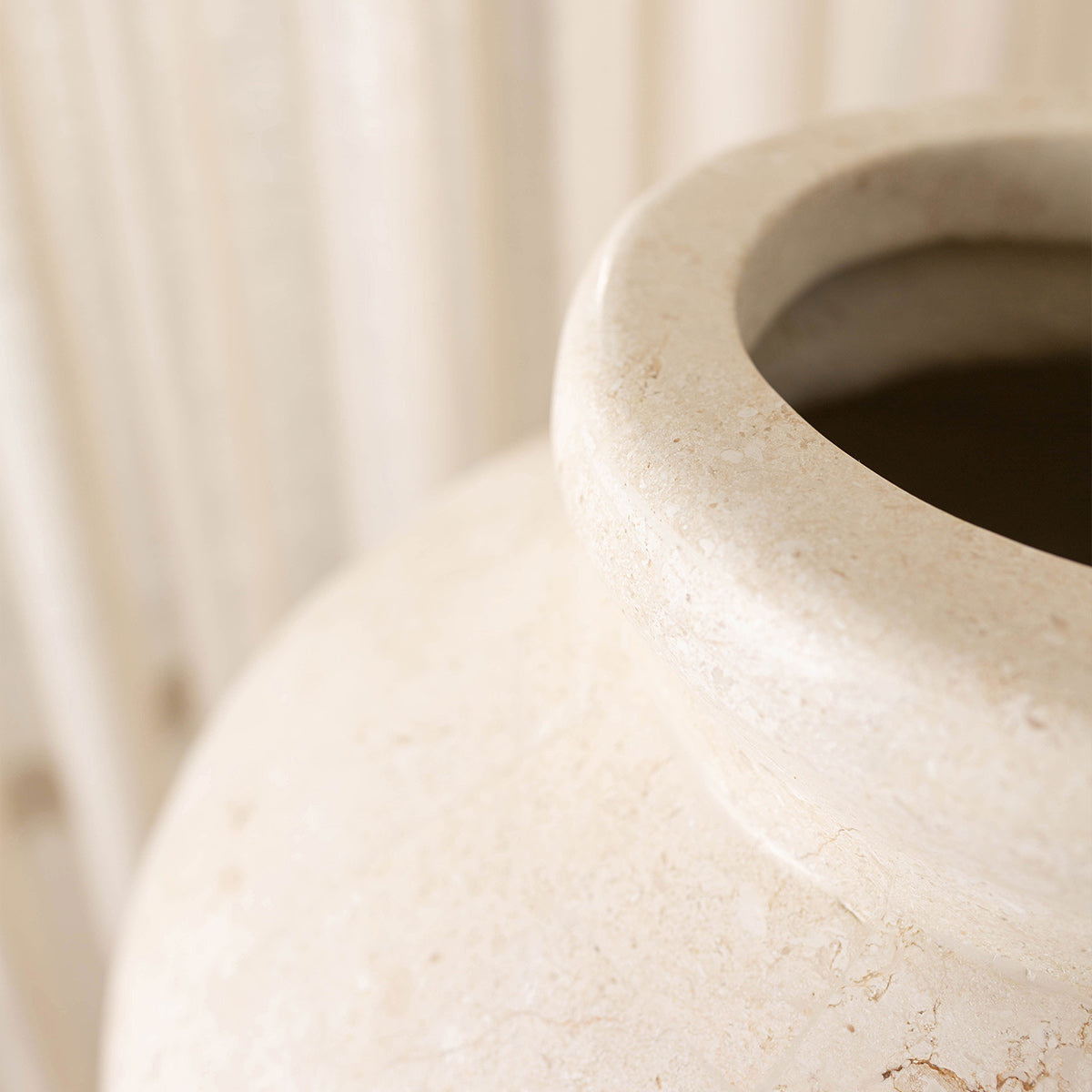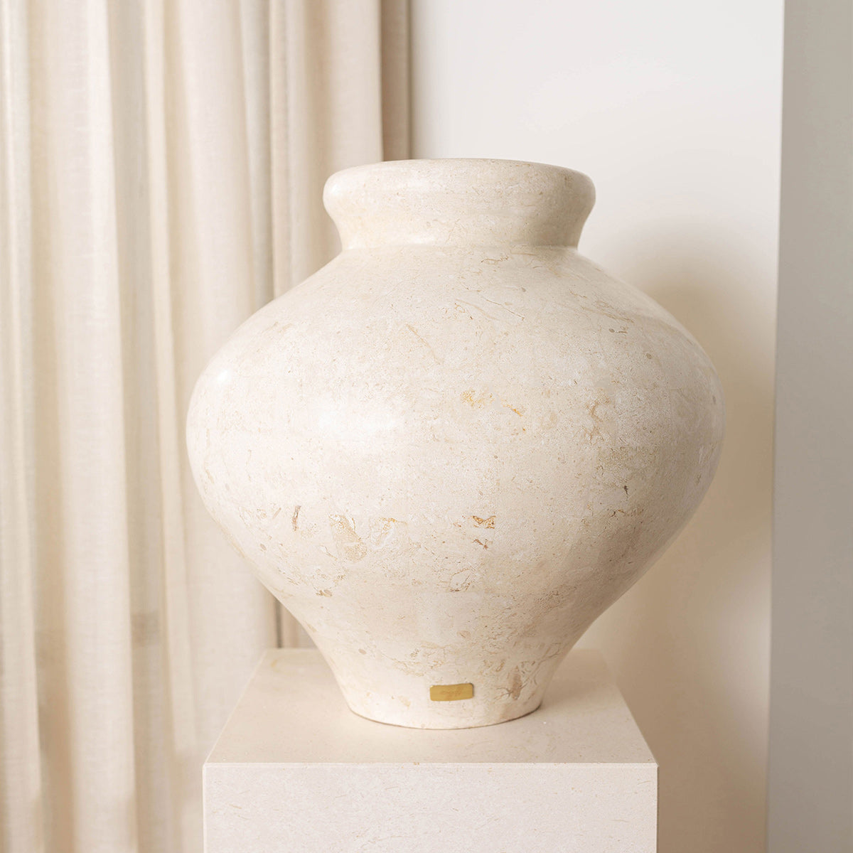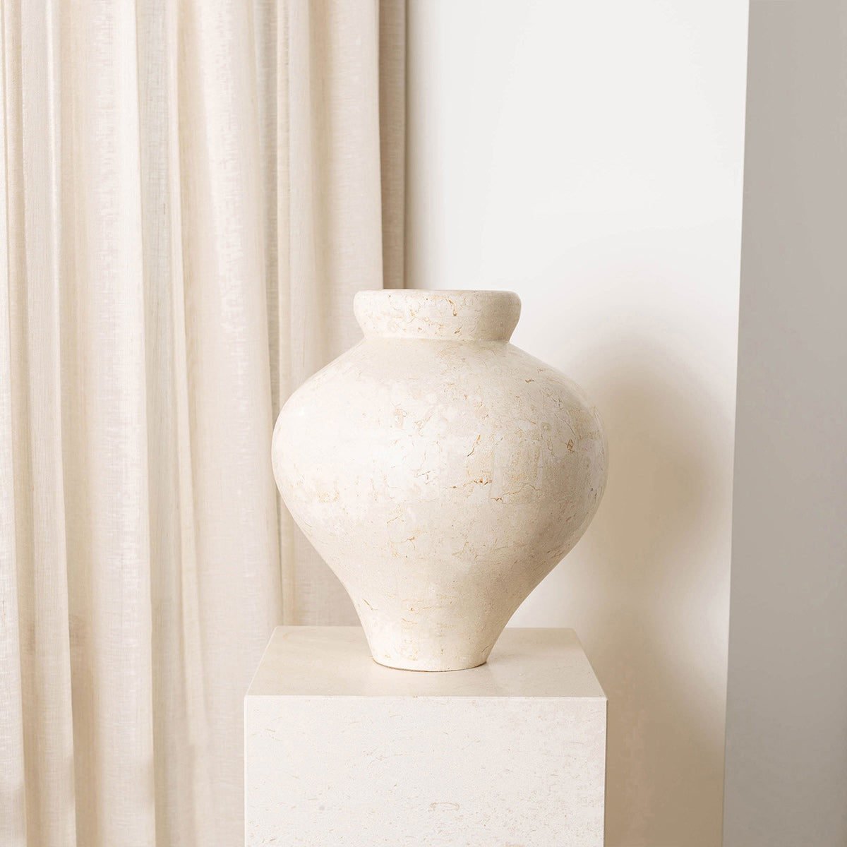 Classic and timeless, our Laguna Vase has been crafted with an intentionally irregular form mirrored from the hand drawn design. Each intricate natural stone tile has been skillfully aligned showcasing our signature Fossil Stone artistry.